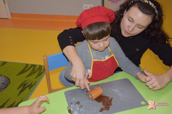 W piątek w Amisiowym Przedszkolu odbyły się zajęcia z Kuchcikowa. Te wyjątkowo pachnące i pełne radości zajęcia rozwijały u dzieci motorykę małą, zmysł zapachu i dotyku. Mimo, iż do świąt jeszcze dużo czasu my zabraliśmy się do pracy wcześniej, bo jak wiadomo małe elfy Mikołaja nie zostawiają świątecznych obowiązków na ostatnią chwilę. Amisiaki wałkowały i wykrawały różnorodne kształty pierniczków – od tradycyjnych serduszek po świąteczne choinki i reniferki. W całym przedszkolu unosił się zapach korzennych przypraw i miłej atmosfery.