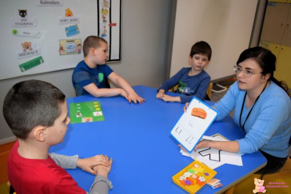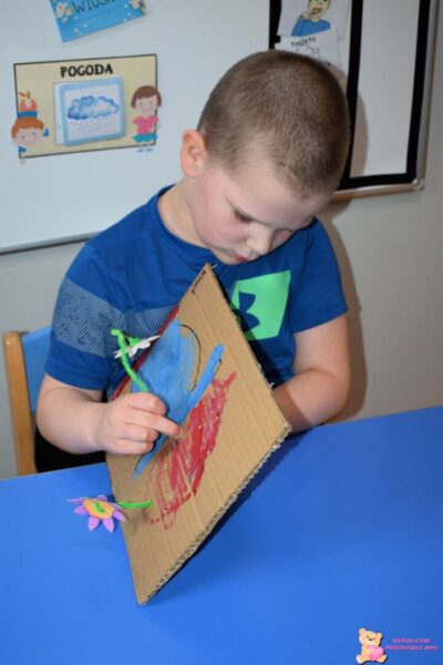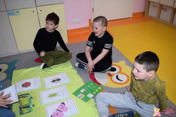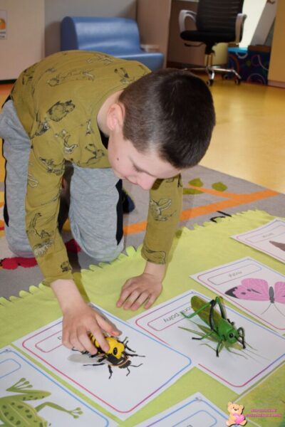 . Chłopcy dopasowywali odpowiednie figurki owadów
