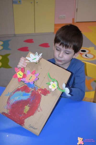 . Nie zabrakło także kolorowych prac plastycznych, a także ćwiczenia małych rączek podczas przewlekania kwiatków