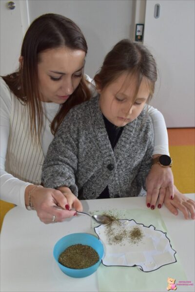 Celem projektu jest przybliżenie dzieciom różnorodności polskich regionów poprzez angażujące aktywności rozwijające zmysły i ciekawość świata. Amisiaki rozpoczęły swoją sensoryczną podróż od wykonania wyjątkowej mapy Polski, wyklejonej aromatycznymi ziołami 🌿🌱. Dzięki temu mogły nie tylko zobaczyć, ale także powąchać i dotknąć elementów związanych z naszym krajem.