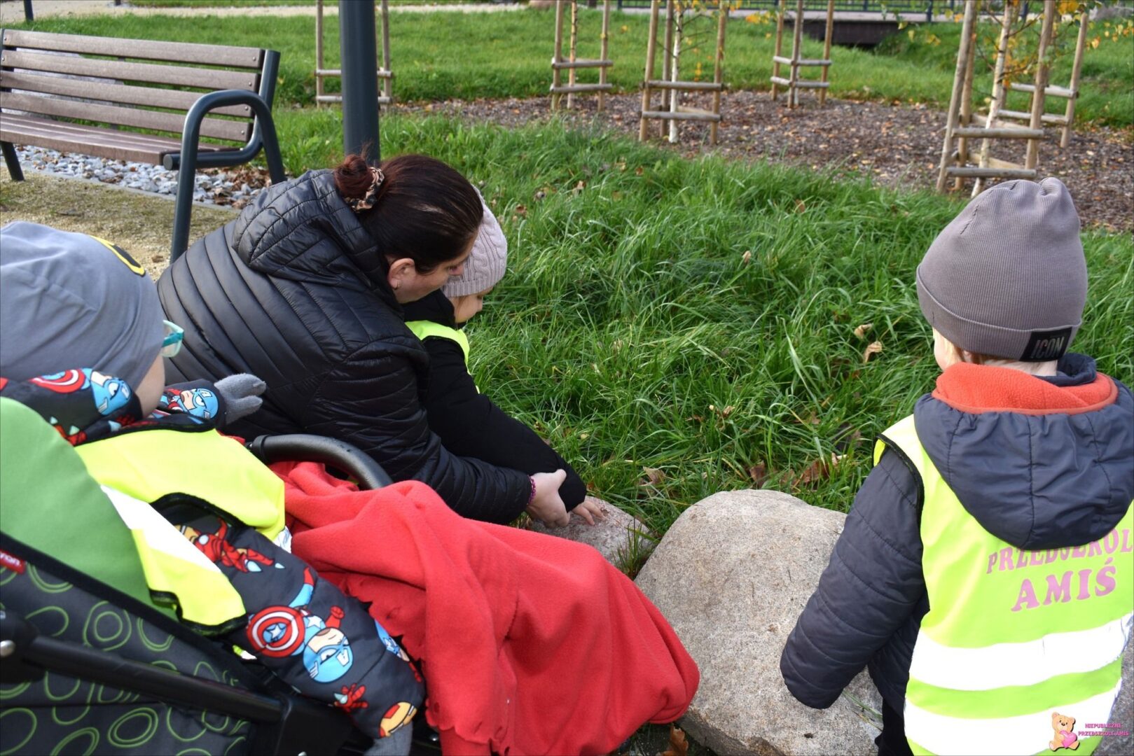 Korzystając z pięknej pogody, dzieci wybrały się również na spacer do miejskiego „Parku Trzy Korony”, gdzie ciocie czytały im ciekawostki o przyrodzie. Podczas wyprawy przedszkolaki podziwiały także imponujące, ogromne głazy, które wywarły na nich duże wrażenie.