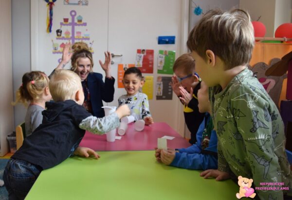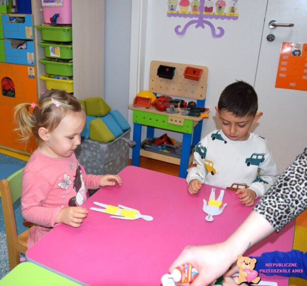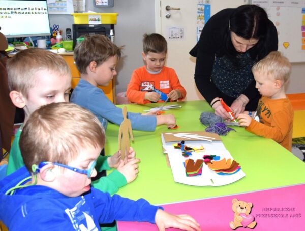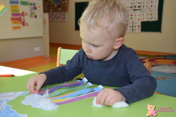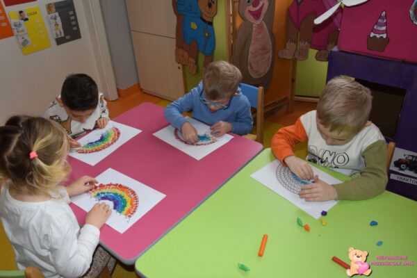 W minionym tygodniu grupa Jeżyków omawiała tematy związane z wiosenną pogodą. Dzieci zagrały w pogodową wieżę, dzięki której powtórzyły typy pogody oraz ćwiczyły refleks i koordynację pomiędzy dłońmi. Zapoznały się także z określeniem „ubierać się na cebulkę” oraz stworzyły kukiełki, które następnie własnoręcznie ubrały. Wprowadzono także literkę 'G’, 'g’. Tydzień ten obfitował w prace plastyczne oraz zabawy ruchowe. Dzieci wyklejały plasteliną, malowały przy pomocy sznurka oraz wycinały nożyczkami. W zakresie motoryki dużej ćwiczyły rzucanie i łapanie piłki oraz naśladowanie ruchów.