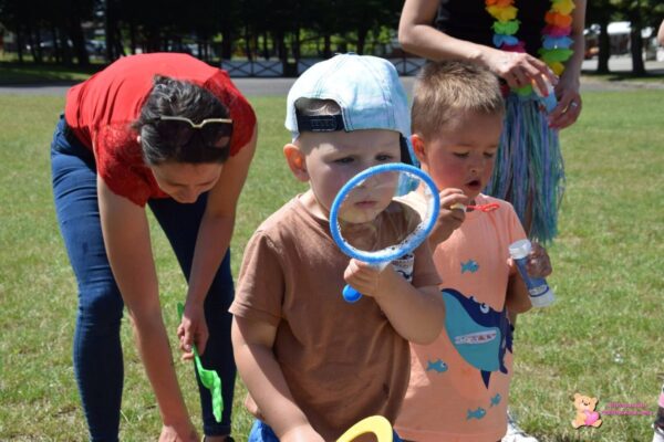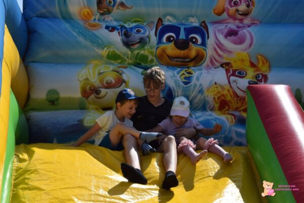 Piknik Rodzinny zgromadził całe rodziny. Poza atrakcjami, o których pisaliśmy w poprzednich postach, było jeszcze wiele, wiele innych niespodzianek dla dzieci: bańki mydlane, warkoczyki, tatuaże, malowanie twarzy, tor przeszkód. Jak zawsze ogromną radość sprawiły dzieciom dmuchane zamki „Z Ekipą Maxa Zabawa na Maxa”. To był dzień pełen świetnej, beztroskiej zabawy. Na gości czekał smaczny poczęstunek. Dziękujemy Rodzicom za pyszne ciasta!