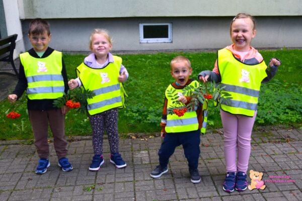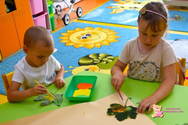 . Każdy dzień przynosił nowe doświadczenia, które łączyły zabawę z nauką i rozwijaniem wyobraźni. Podczas zabawy sensorycznej z zawiązanymi oczami, dzieci starały się rozpoznawać jesienną pogodę. Malowaliśmy liście farbami i odciskaliśmy je na wspólnym kartonie. Wykorzystywaliśmy kolorowe liście do zabaw matematycznych. Dzieci przeliczały, porównywały i segregowały. Wybraliśmy się też na pierwszy jesienny spacer, na którym obserwowaliśmy zmiany zachodzące w przyrodzie.