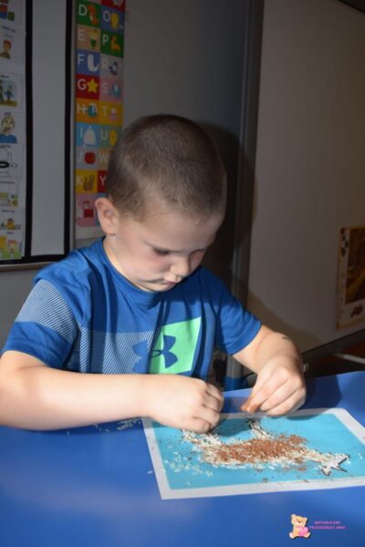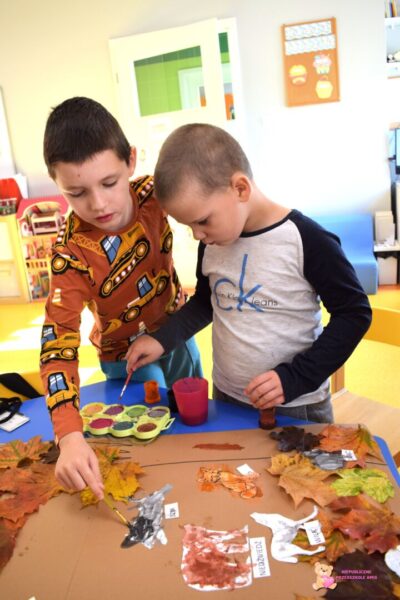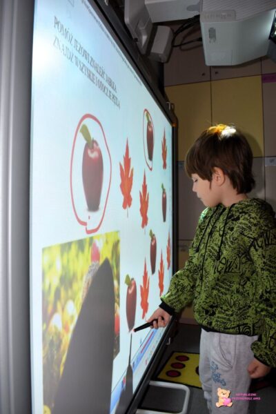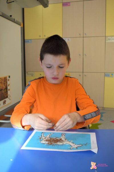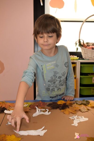 Dzieci z grupy II w tym tygodniu uczyły się odróżniać środowiska parku i lasu, a także zdobyły wiedze o tym, dlaczego liście zmieniają kolor🍂. Przedszkolaki przypomniały sobie i poznały zwierzęta, które można spotkać podczas spacerów w lesie lub w parku🐿. Chłopcy podczas pracy w grupie czytali globalnie i literowali nazwy dzikich zwierząt. Na tablicy multimedialnej jesienne zadania sprawiły dzieciom wiele radości. Do wypełnienia konturów sarny dzieci miały do dyspozycji ryż i kakao. Kreatywnie połączyły te dwa składniki, aby wykonać prace sensoryczną. Podczas jesiennego spaceru Amisiaki zebrały dużo kolorowych liści, dzięki którym udało wykonać się wspólną pracę plastyczną pt. „Jesienny Las Zajączków”🐇.