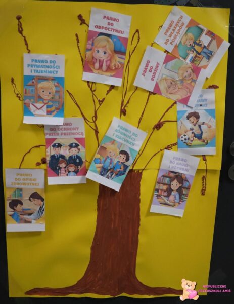 Każdemu dziecku, niezależnie od koloru skóry, wyznania czy pochodzenia, przysługują takie same prawa – prawa dziecka. To właśnie dziś 20 listopada obchodzimy Międzynarodowy Dzień Praw Dziecka, z tej okazji przedszkolaki obejrzały film edukacyjny dotyczący praw i obowiązków dziecka, a następnie wykonały plakat przyklejając do drzewa obrazki z prawami i obowiązkami. Na koniec dzieci pokolorowały rysunek.