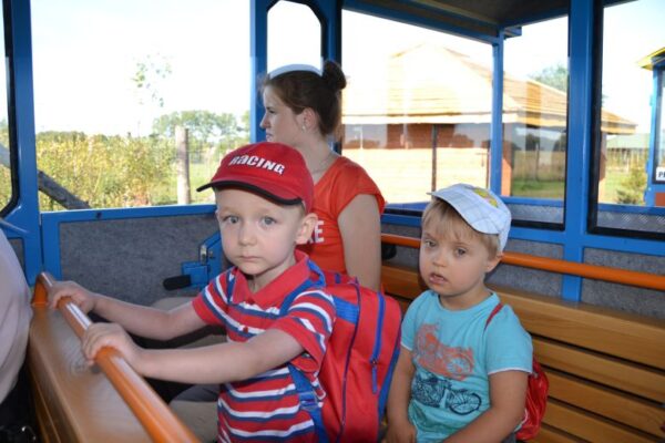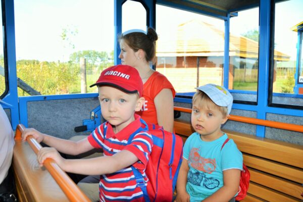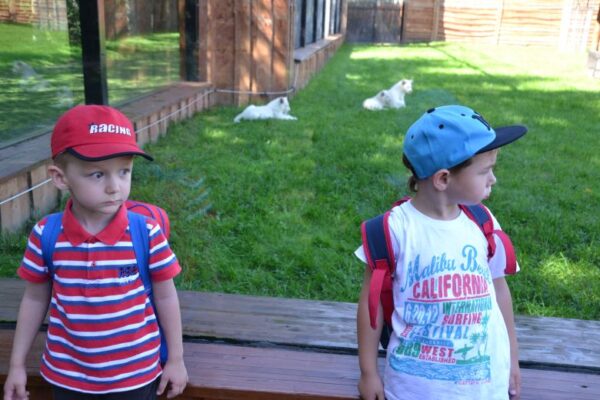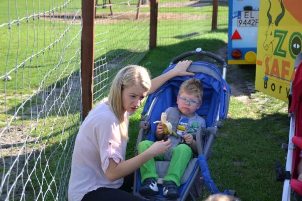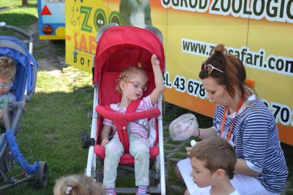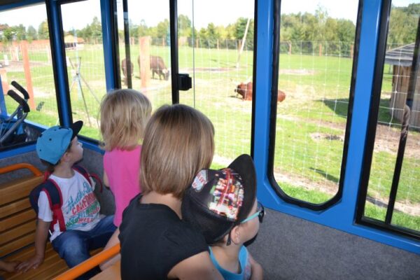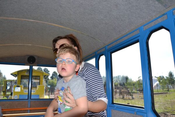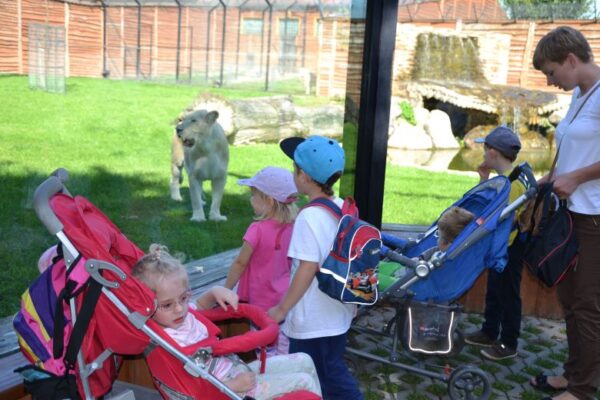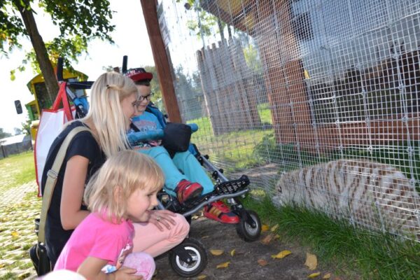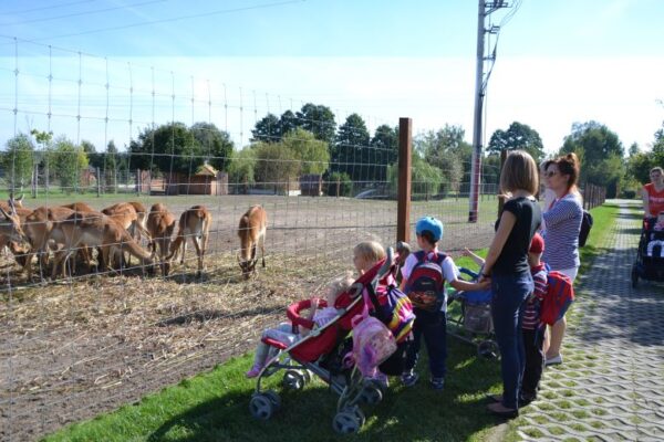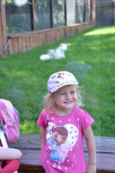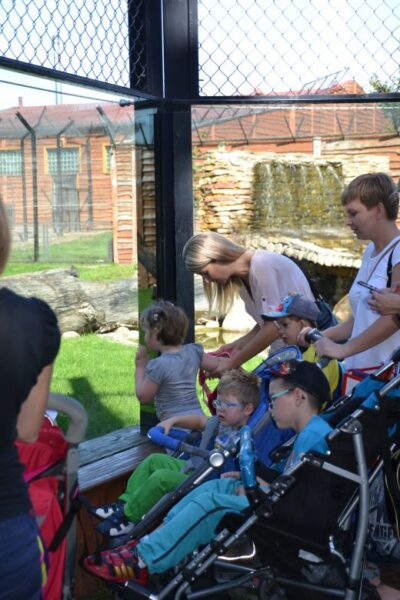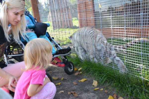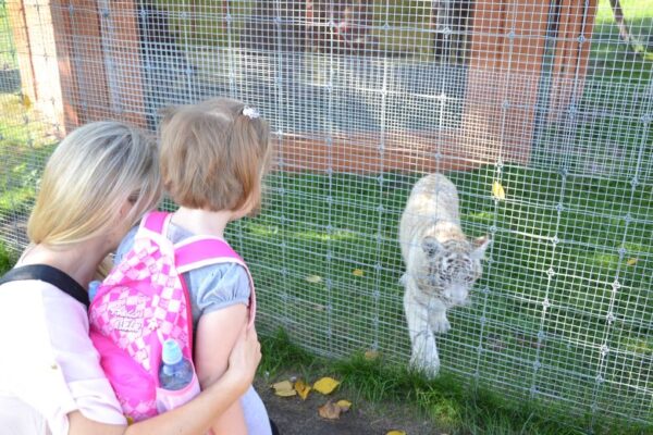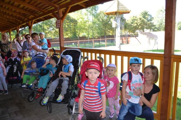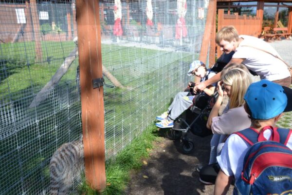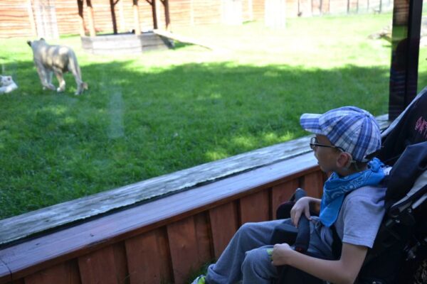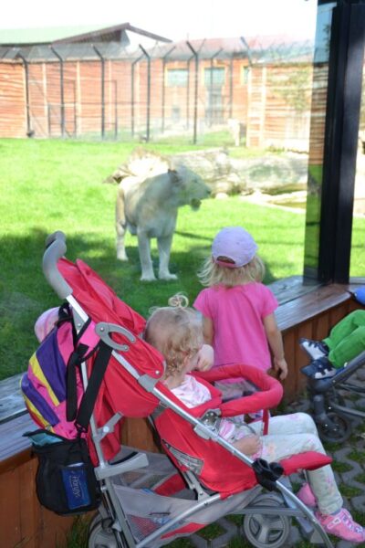 Mieliśmy bliskie spotkanie z Tygryskami, karmiliśmy zwierzaki w Mini ZOO. Dodatkowo oglądaliśmy białe lwy i żyrafy. Zwiedzaliśmy zoo kolejką, ale była zabawa. Ten czas był tak wyczerpujący, ze tylko nieliczni wytrwale w drodze powrotnej oglądali przyrodę z za okna.
