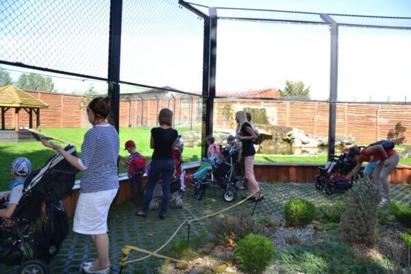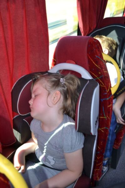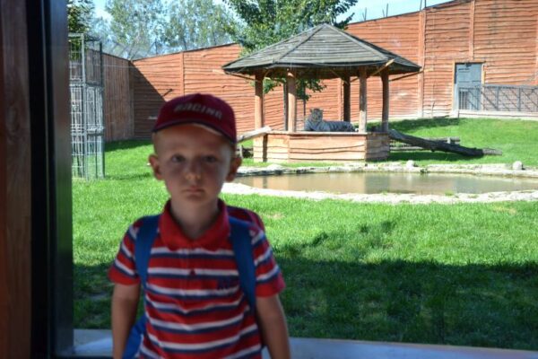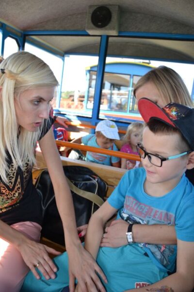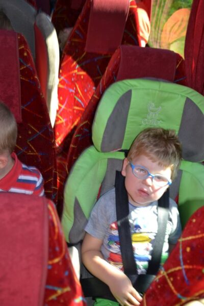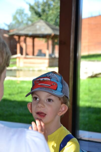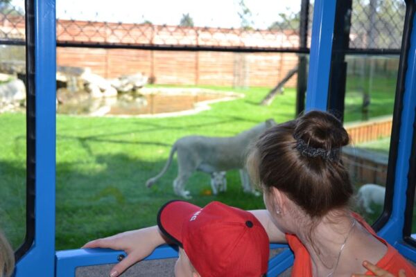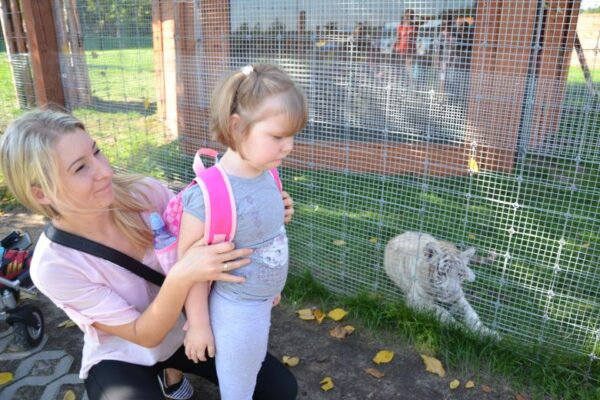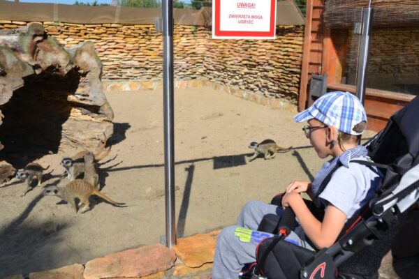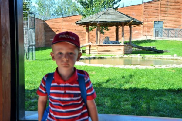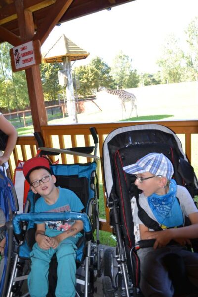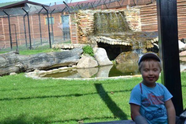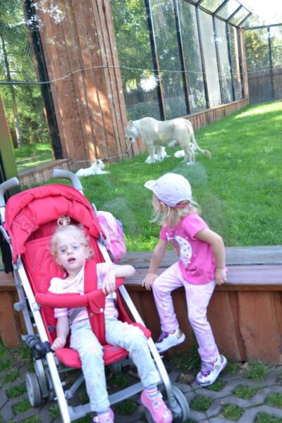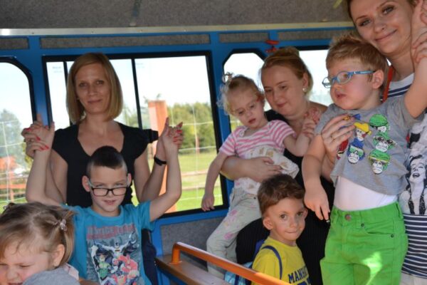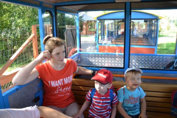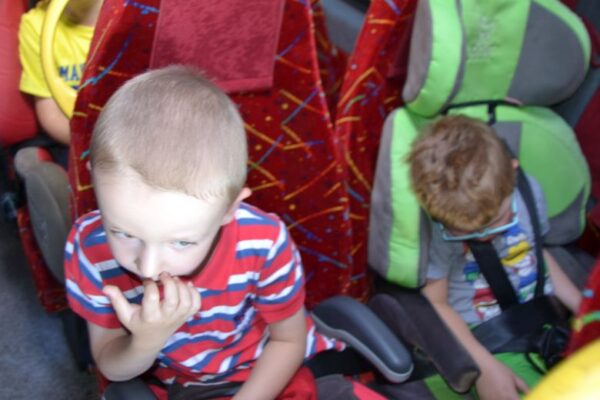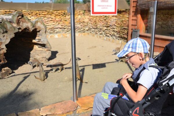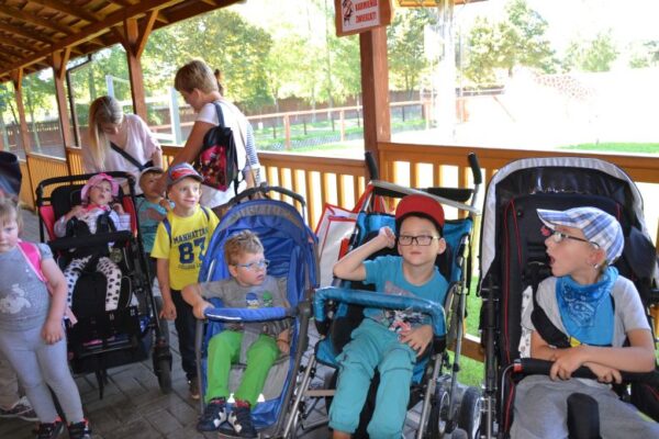 Mieliśmy bliskie spotkanie z Tygryskami, karmiliśmy zwierzaki w Mini ZOO. Dodatkowo oglądaliśmy białe lwy i żyrafy. Zwiedzaliśmy zoo kolejką, ale była zabawa. Ten czas był tak wyczerpujący, ze tylko nieliczni wytrwale w drodze powrotnej oglądali przyrodę z za okna.