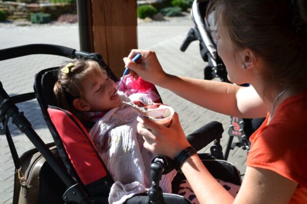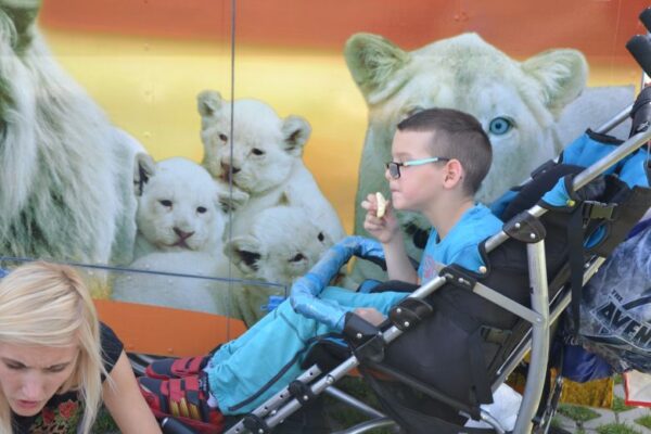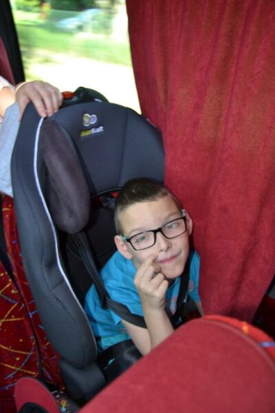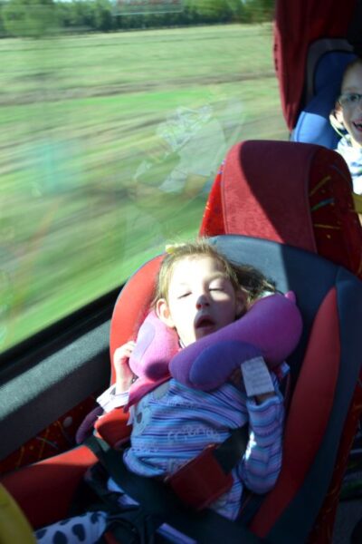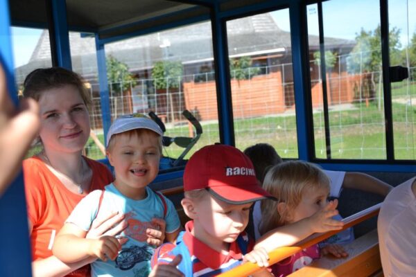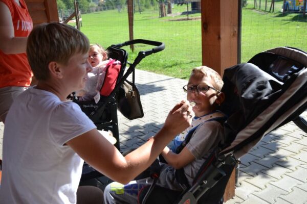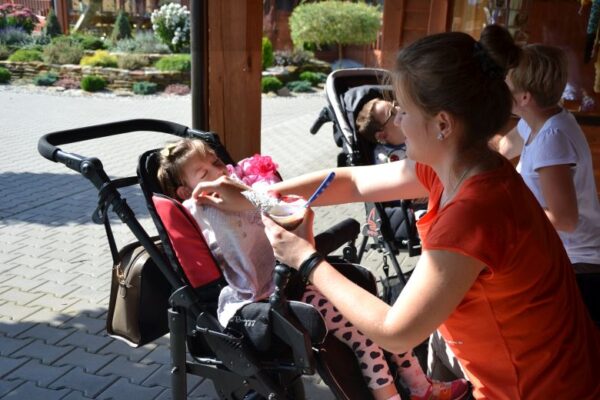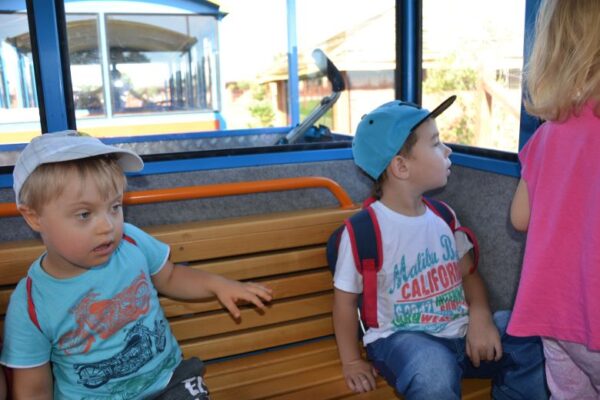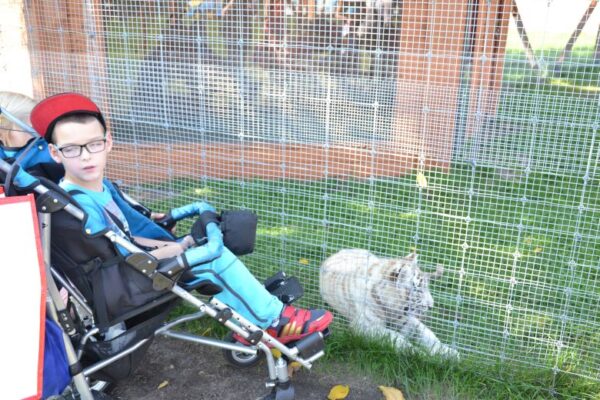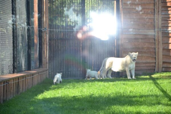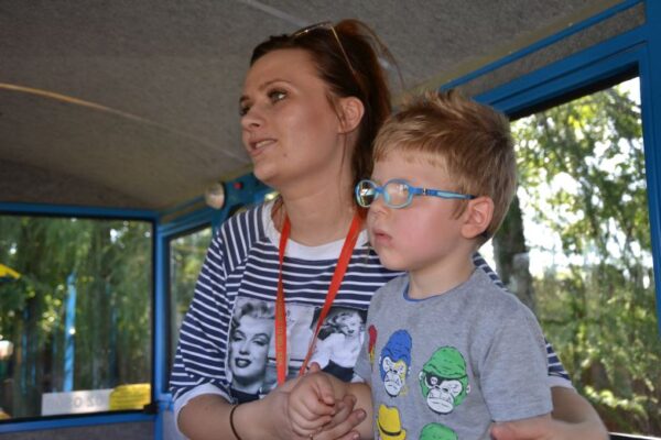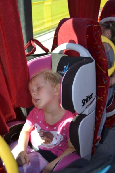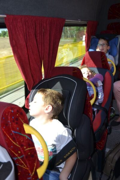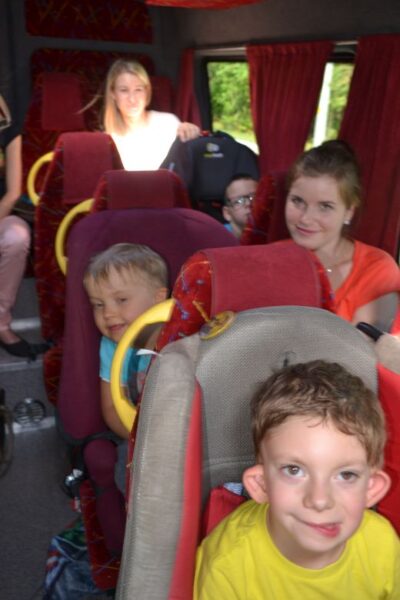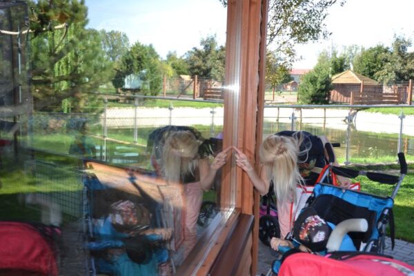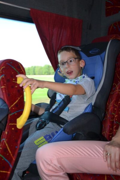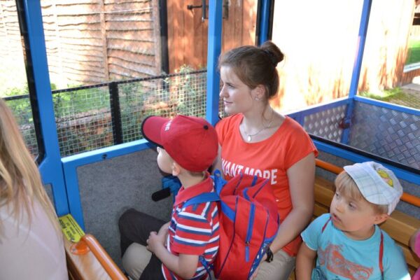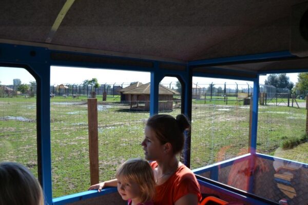 Mieliśmy bliskie spotkanie z Tygryskami, karmiliśmy zwierzaki w Mini ZOO. Dodatkowo oglądaliśmy białe lwy i żyrafy. Zwiedzaliśmy zoo kolejką, ale była zabawa. Ten czas był tak wyczerpujący, ze tylko nieliczni wytrwale w drodze powrotnej oglądali przyrodę z za okna.