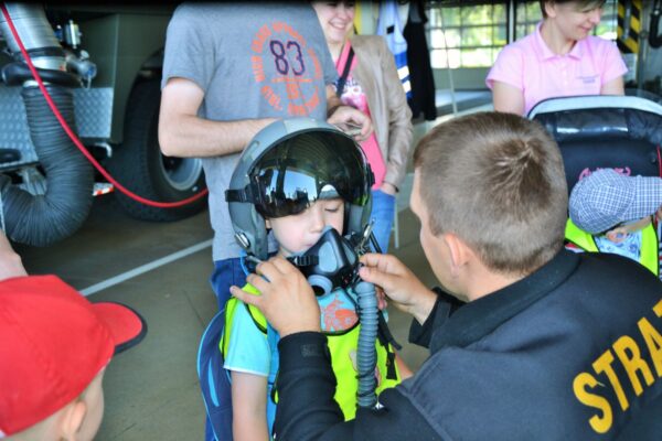 Przemili panowie strażacy zadbali o nas i pozwolili nam przymierzać swoje stroje w których na co dzień pełnią swoją służbę.