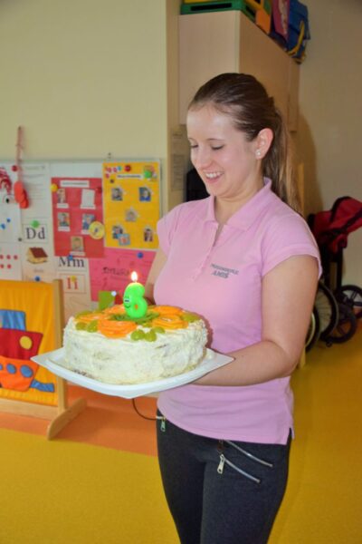 W przedszkolu obchodzimy urodziny naszych amisiowych przedszkolaków. Tym razem obchodziliśmy 6 urodziny Julii. Mama przygotowała pyszny tort, którego dzieci zajadali z wielkim apetytem po odśpiewaniu wesołego sto lat sto lat. Julka otrzymała w prezencie kartkę urodzinową od koleżanek i kolegów z przedszkola. Julii życzymy jeszcze raz wszystkiego najlepszego.