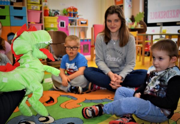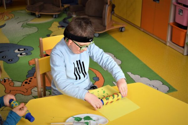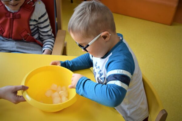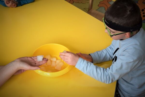 W Grupie III pomimo małej frekwencji wiele się wydarzyło. Powitaliśmy nowa panią, która będzie prowadziła w przedszkolu język angielski. Już na pierwszych zajęciach przypomnieliśmy sobie nazwy kolorów w języku angielskim oraz poznaliśmy nowego przyjaciela Samiego, który będzie nam towarzyszył w nauce nowego języka. Na zajęciach dydaktycznych prowadziliśmy doświadczenia i eksperymenty z użyciem lodu. Dzieci badały właściwości lodu poprzez dotyk. Było przy tym wiele zabawy oraz śmiechu. Przedszkolaki wykonały pracę plastyczną „Dziwne ślady” techniką stemplowania.