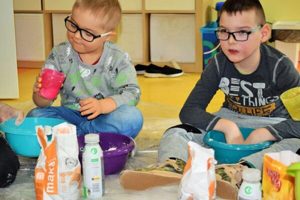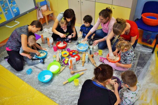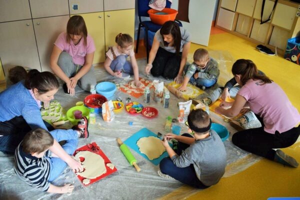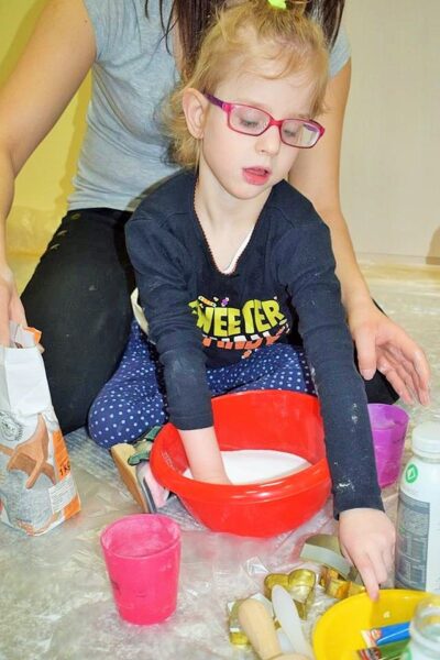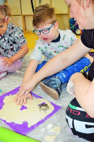 Z okazji walentynek postanowiliśmy również świętować na zajęciach z sensoplastyki. Dzięki wymieszaniu wody, soli i mąki powstała masa solna. Po wyrobieniu wycinaliśmy różne kształty, jednak z okazji dzisiejszego święta serduszek było najwięcej.