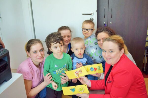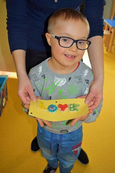 Aby było smacznie ozdabialiśmy nasze przygotowane „ciasteczka”. Aż szkoda, że nie mogliśmy ich zjeść. Na zakończenie zajęć poszliśmy zanieść w prezencie nasze serduszka pani Ani i pani Magdzie.