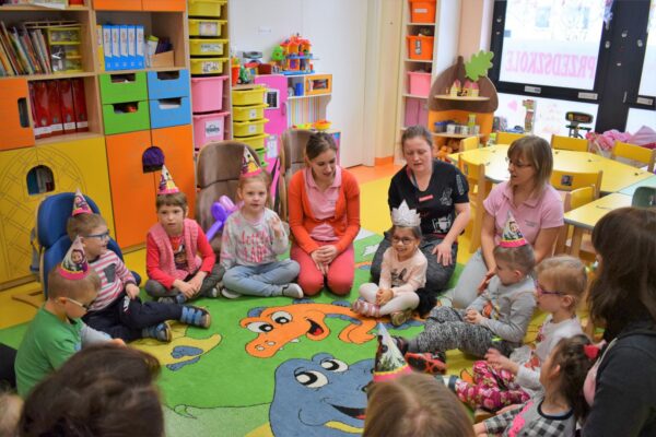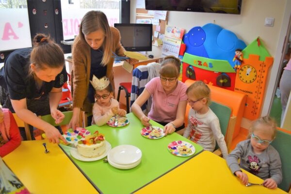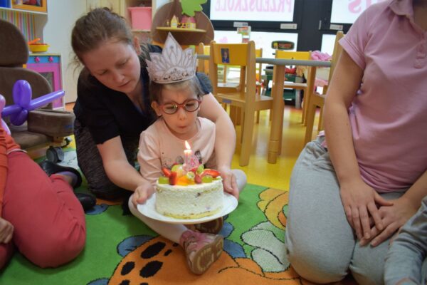 Dziś w Amisiowym Przedszkolu wspólnie świętowaliśmy 4 urodzinki Wiktorii. Dzieci z wszystkich grup zaśpiewały radosne sto lat, a następnie ciocie wręczyły dziewczynce kartkę urodzinową oraz uroczy balonik w kształcie kwiatka. Nasza solenizantka z pomocą cioć zdmuchnęła urodzinową świeczkę, a następnie wszyscy zjedli pyszny tort urodzinowy. Naszej Wiktorii jeszcze raz życzymy Wszystkiego najlepszego!!!