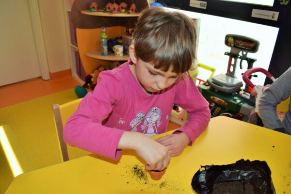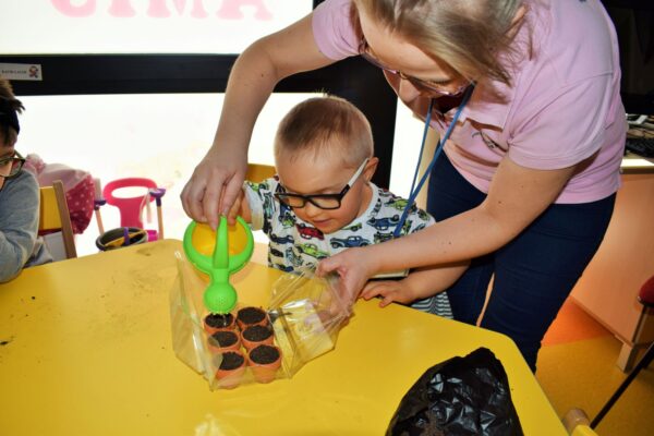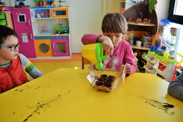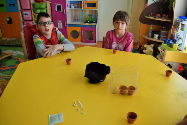 Wiosna tuż tuż, tak więc ciocie postanowiły, że najwyższy czas zacząć pracę ogrodnicze. Dzieci sadziły fasolę w mini przedszkolnym ogródku. Potrzebowały doniczki, ziemię nasiona i wodę. Ciekawe, które dziecko ma „rękę” do roślin i komu wyrośnie dorodna fasolka. Okażę się to za parę dni!