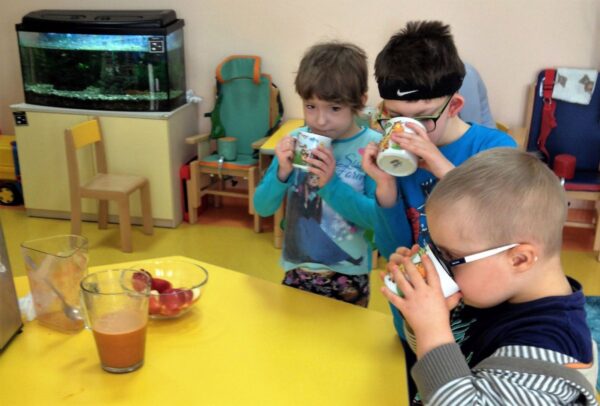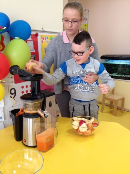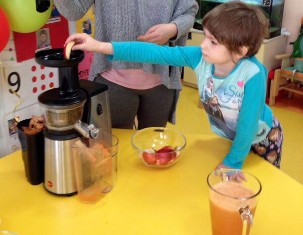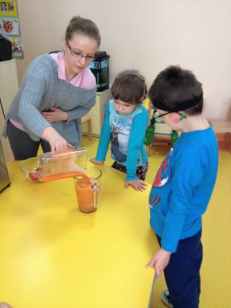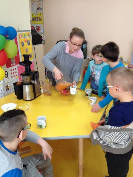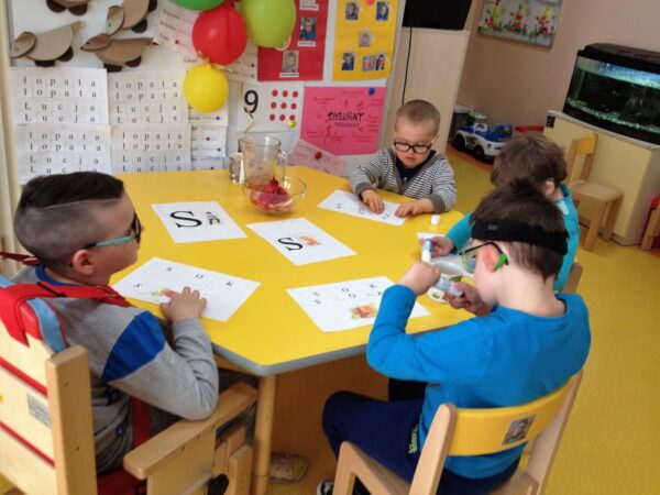 W grupie 3 Amisiowego Przedszkola ostatnio sporo się działo. Dzieci poznały nową literkę „S”, przy pomocy cioci zrobiły sok z owoców i marchewek, a następnie przyklejały napis pod obrazkiem. Ponieważ pogoda nam sprzyjała, często wychodziliśmy na spacery. Oczywiście odwiedzaliśmy ulubione miejsce dzieci – plac zabaw, na którym aktywnie spędzały czas.  Po intensywnym wysiłku na dworze relaksowaliśmy się z ciocią Olą na zajęciach  z Terapii Przez Sztukę.