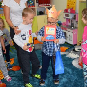 21 września w Sali Biedronek obchodziliśmy niezwykłe święto – 7 urodziny Szymona. Wraz z nami świętowały dzieci z Sali Jeżyków. Nasz elegancki jubilat otrzymał kartkę urodzinową, moc życzeń, zdmuchnął świeczki i usłyszał głośno odśpiewane 100 lat. Oczywiście urodziny nie mogłyby się odbyć bez słodkiego poczęstunku, który wszystkim smakował. Kochany Szymonie jeszcze raz życzymy Ci wszystkiego co najlepsze i spełnienia marzeń!!!