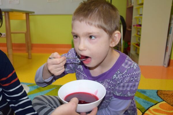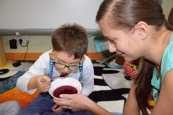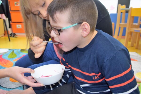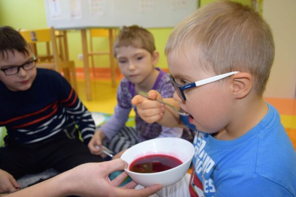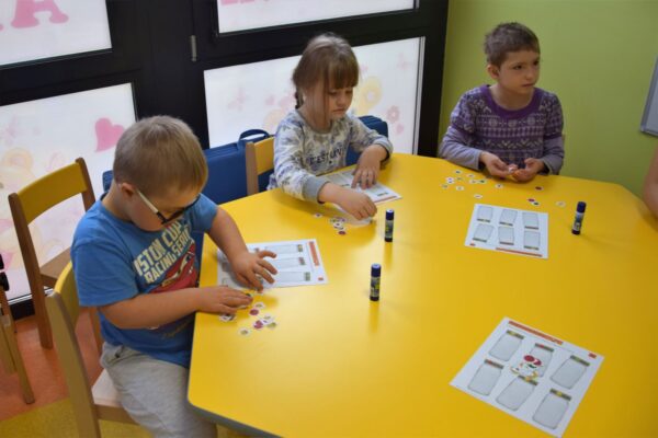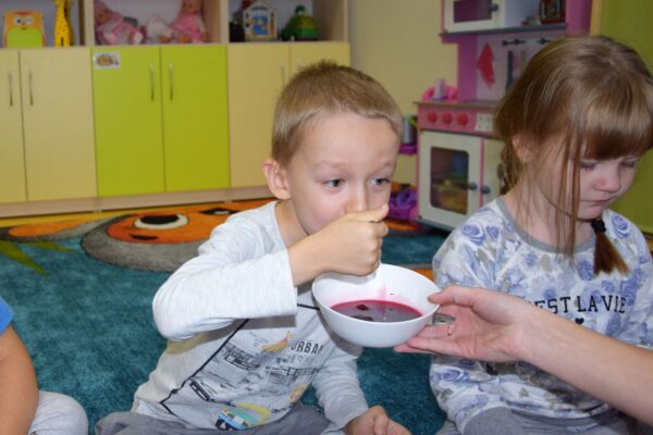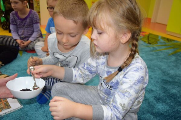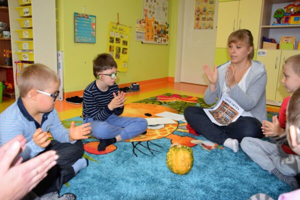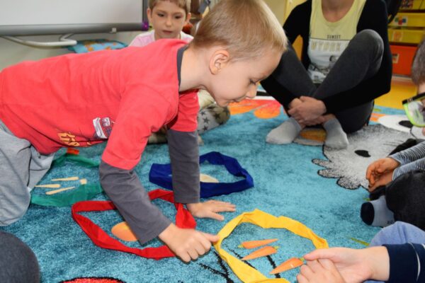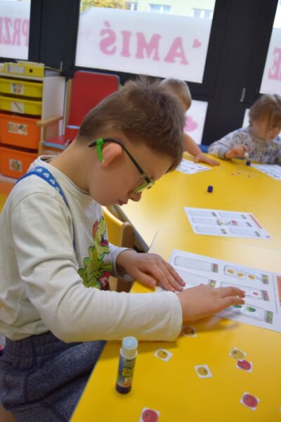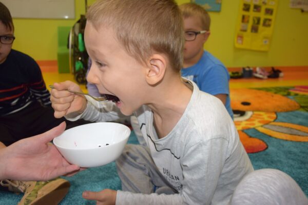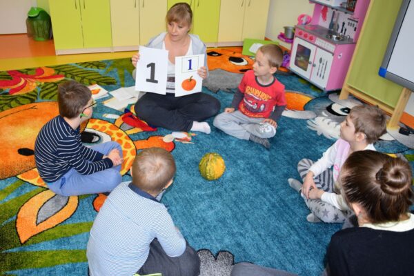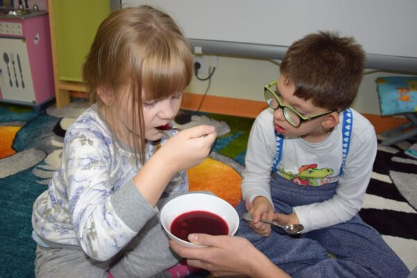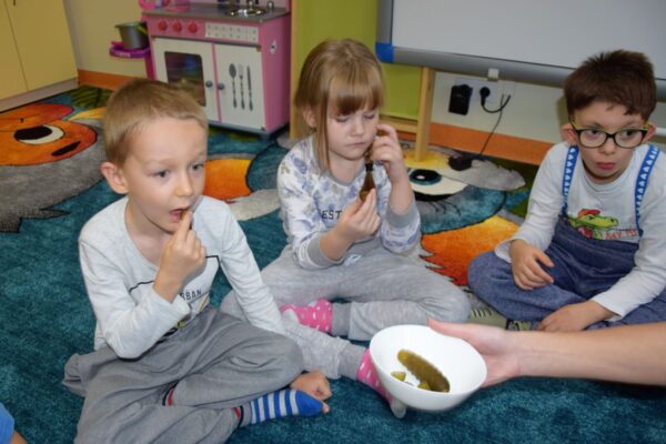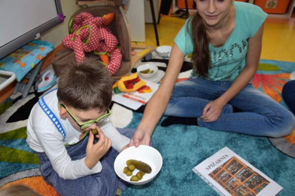 W grupie Biedroneczek jak zawsze dużo pracy… Przyszedł czas na poznanie liczb. Na początek liczba 1. Nasze Amisiaki musiały odnaleźć ukrytą liczbę. A gdzie ona mogła się schować? Hmmm…. Jest Jesień, więc znaleźliśmy ją w spiżarni. Jak się okazało w spiżarni ukryły się również różne smakołyki: ogórki kiszone i konserwowe, powidła aroniowe, sok ze słodkimi malinkami. Biedroneczki z chęciom spróbowały wszystkich przysmaków. A po degustacji przyszedł czas na pracę i ćwiczenia: porównywaliśmy zbiory, przeliczaliśmy warzywa, grupowaliśmy przedmioty pod względem koloru i wielkości, pisaliśmy liczbę 1, wyklejaliśmy weki, a przy tym wszystkim świetnie się bawiliśmy.