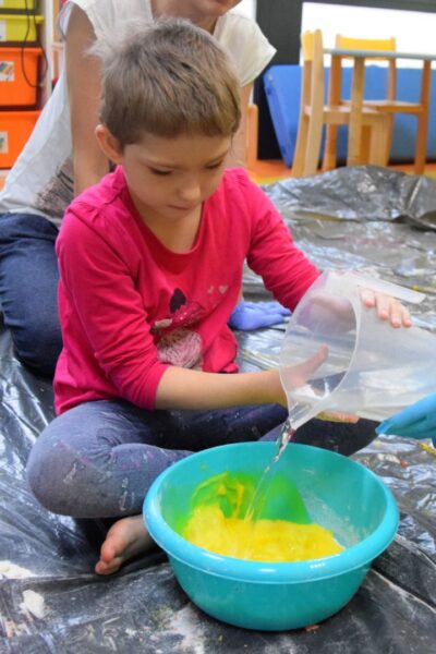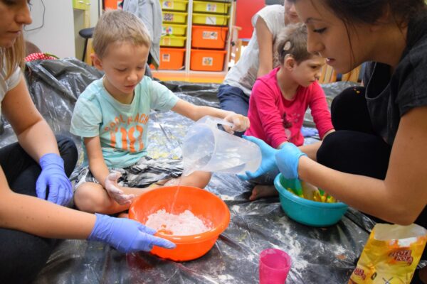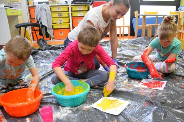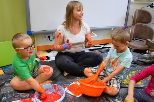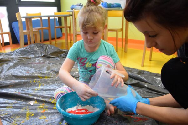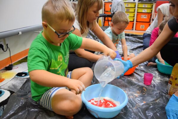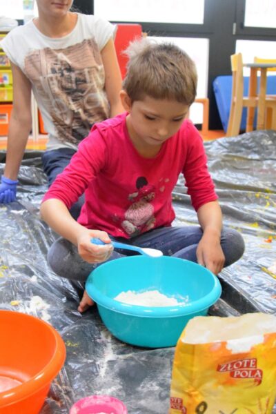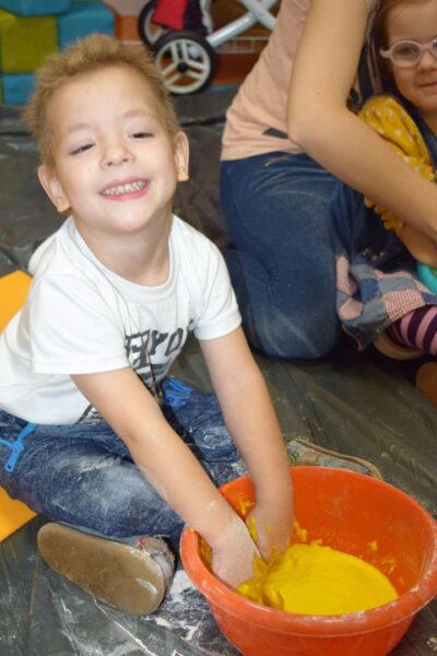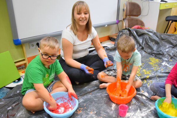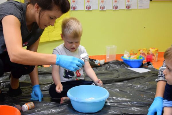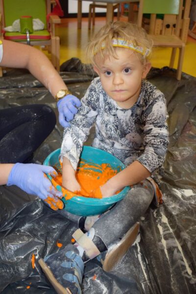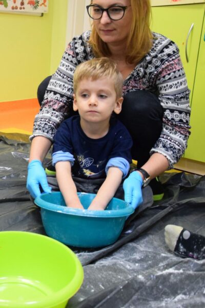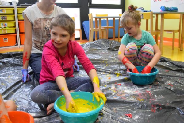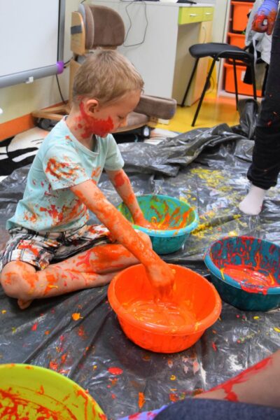 Dziś na zajęciach z SENSOPLASTYKI było bardzo kolorowo 🙂 Ze specjalnie przygotowanej farby stworzyliśmy piękne jesienne liście. Nasze Amisiaki ugniatały ciasto z wybranym przez siebie barwnikiem. Dzieci miały z tego powodu wiele frajdy, przecież mogły brudzić się do woli. Następnie przedszkolaki obserwowały co stanie się z ciastem po podgrzaniu. Dzięki cioci Patrycji Sensoplastyka to świetna zabawa!