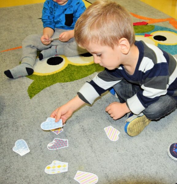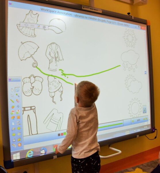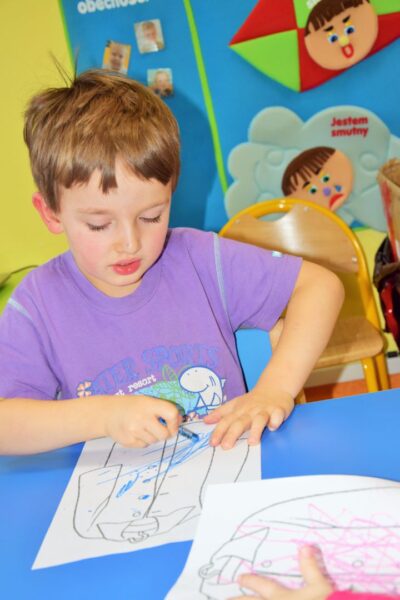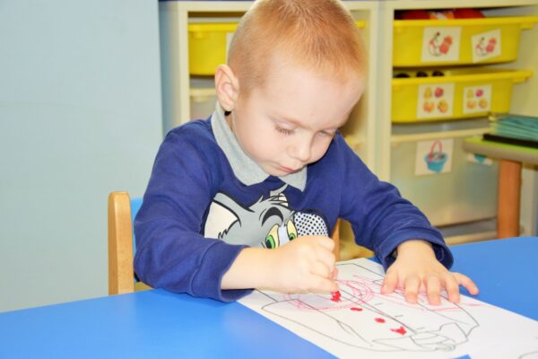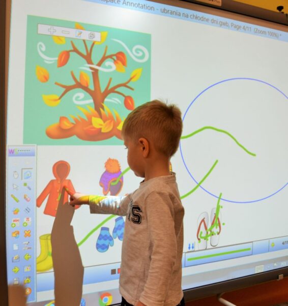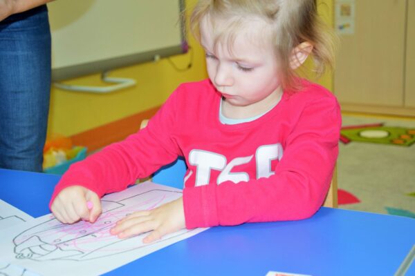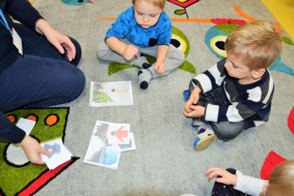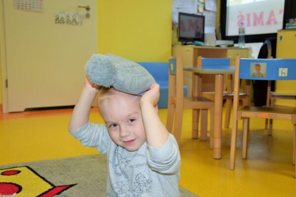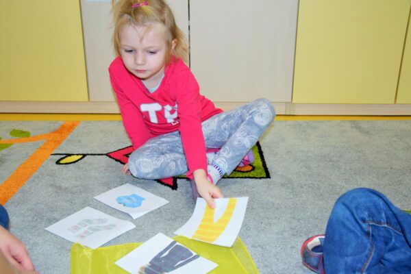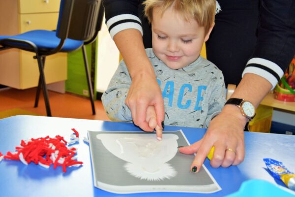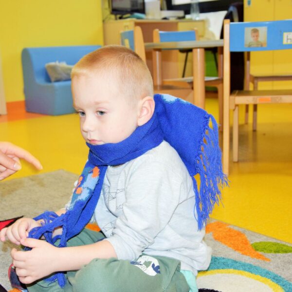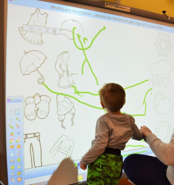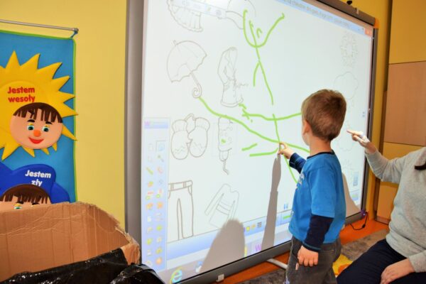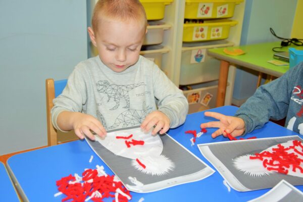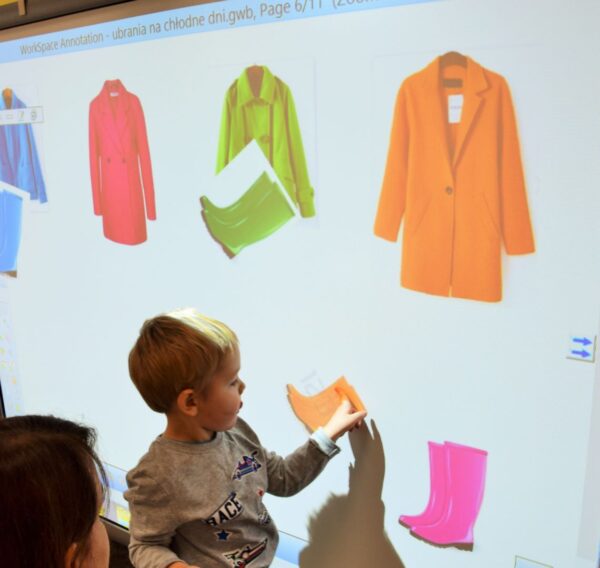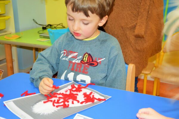 W tym tygodniu w grupie Sówek dzieci uczyły się jak się ubrać w chłodne dni. Dzieci dowiedziały się co należy założyć na siebie jesienią i zimą oraz w jakiej kolejności. Samodzielnie próbowały zakładać kurtki, czapki, szaliki i rękawiczki podczas przygotowań do codziennych spacerów. Dzieci ubierały też na zajęciach postać chłopca w prawdziwe ubrania. Musiały dopasować ubranie do części ciała.