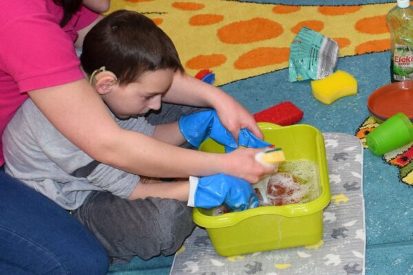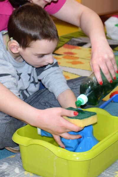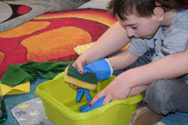 W tym tygodniu grupa Myszek solidnie przygotowała się do powitania wiosny. Najpierw zrobiliśmy małe porządki, uczyliśmy się zmywać naczynia, nalewać płyn na gąbkę, oraz moczyć ją w wodzie. Dzieci podczas spaceru szukały również pierwszych wiosennych kwiatów. Udało nam się namalować wiosenny krajobraz oraz kwiaty. Czekamy na słońce i cieplejszą pogodę, aby móc codziennie korzystać z wiosennych spacerów.