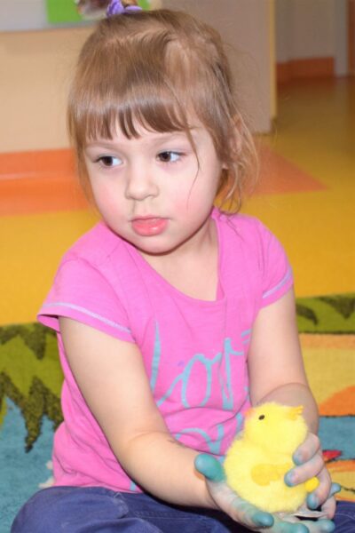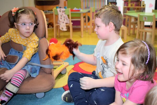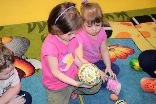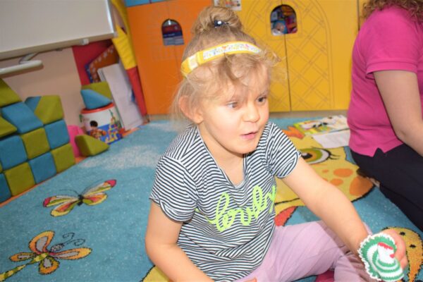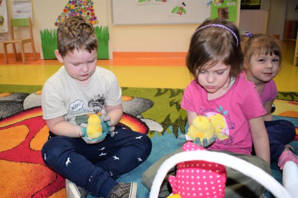 Kury, koguty i kurczątka odwiedziły grupę Jeżyków. Kto znosi jajko kogut czy kura? I z czego składa się jajko? To były główne pytania dnia. Fajna zabawa ruchowa Kwoka i kurczątka rozruszała dzieci od samego rana. Następnie dzieci oglądały jajka, pisanki, kury, kurki i koguty. Niespodzianką dla dzieci były wydające głos małe żółte kurczaczki do których każdy mógł się przytulić. Ćwiczenia matematyczne na konkretach poszły bardzo sprawnie. Zabawa badawcza z czego składa się jajko była dużym zaskoczeniem dla dzieci, ponieważ ciocia rozbiła jajko i dzieci mogły przyglądać się co znajduje się we wnętrzu skorupki. Grupa Jeżyków bardzo lubi doświadczenia.