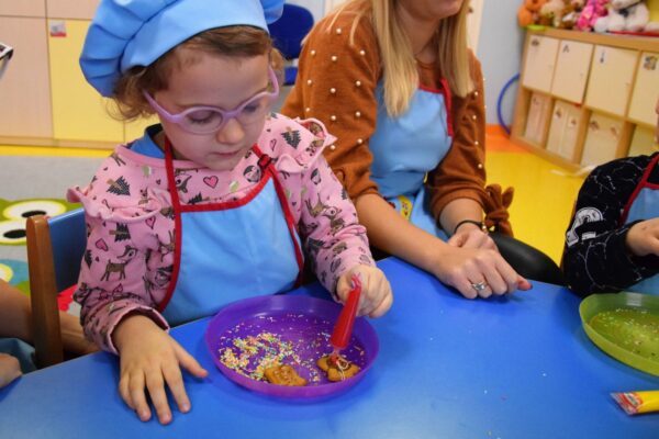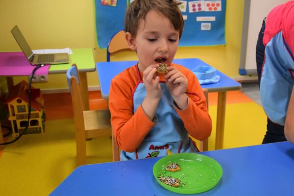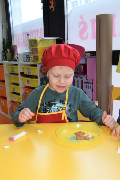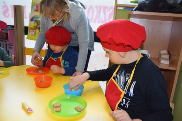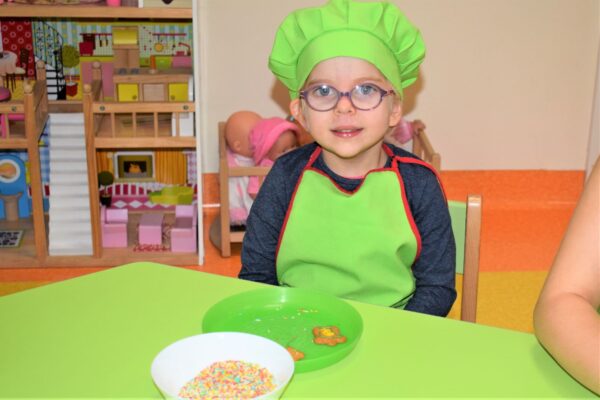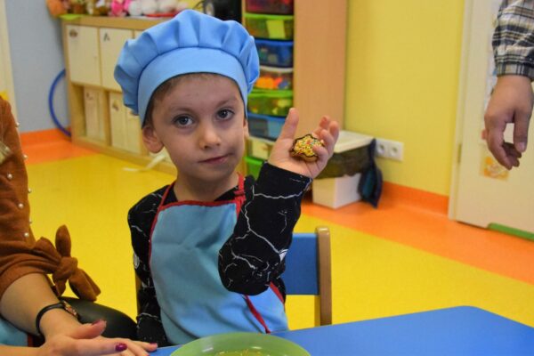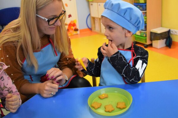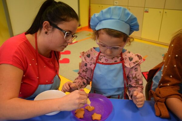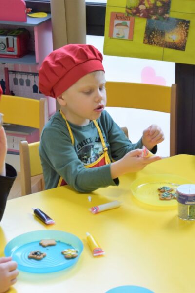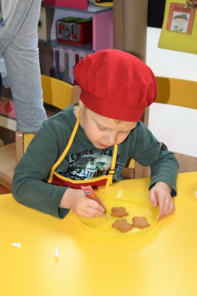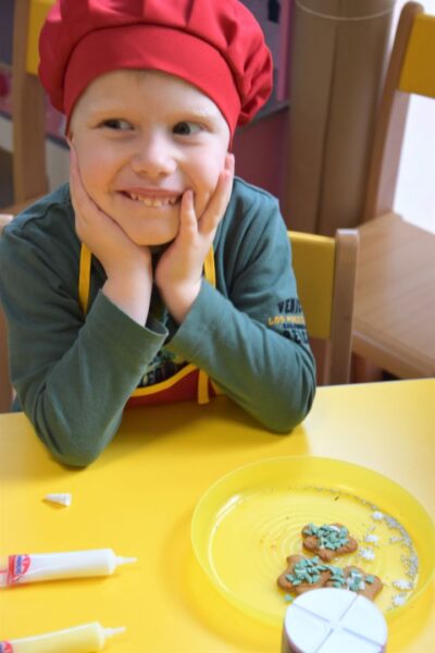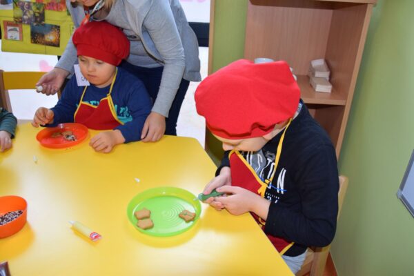 Amisiowe przedszkolaki poczuły już nadchodzące święta 🙂 Wszystkie dzieci brały czynny udział w zajęciach Kuchcikowa. Były pierniczki w kształcie dzwoneczków, a także kolorowe pisaki lukrowe i różnorodne posypki. Jeżyki, Sówki, Myszki i Biedronki dekorowały pierniczkowe ciasteczka według własnego pomysłu. Wśród posypek dzieci mogły rozpoznać kształty choinki, płatków śniegu, a także gwiazdek. Pierniczkowy zapach dekorowanych ciasteczek roznosił się po całym przedszkolu, a dzieci z chęcią konsumowały przygotowane przez siebie smakołyki 🙂