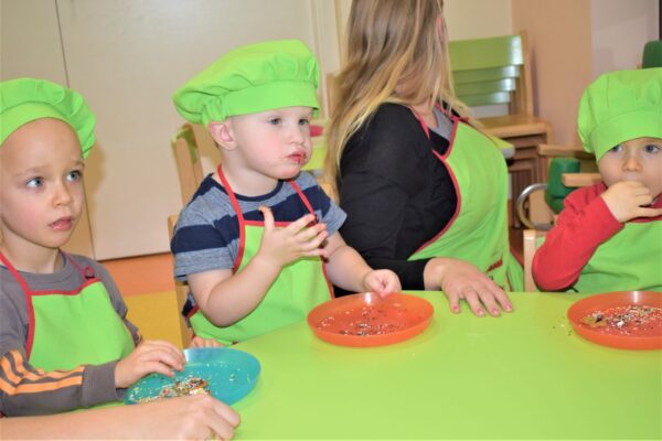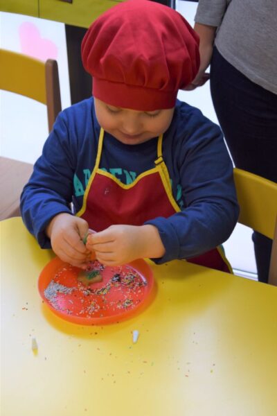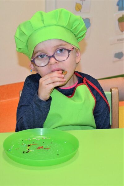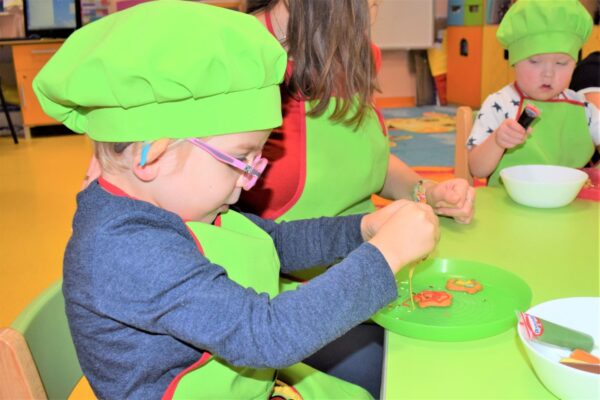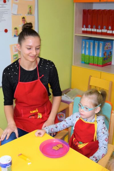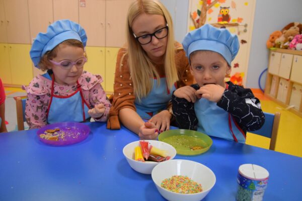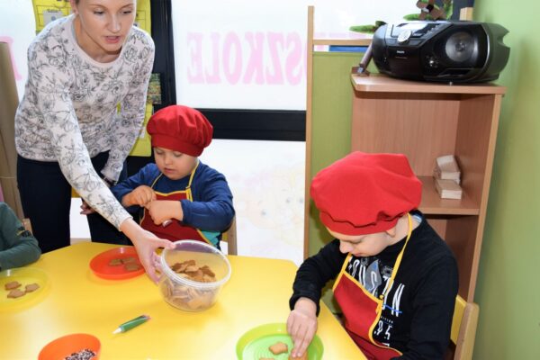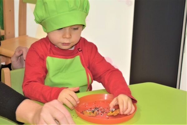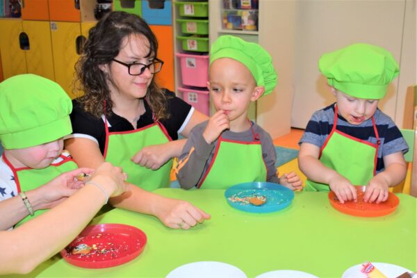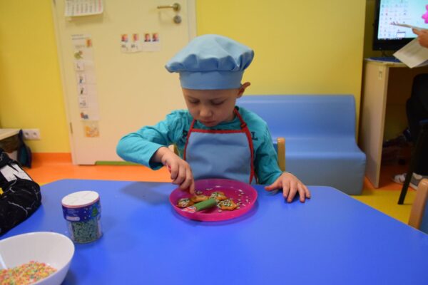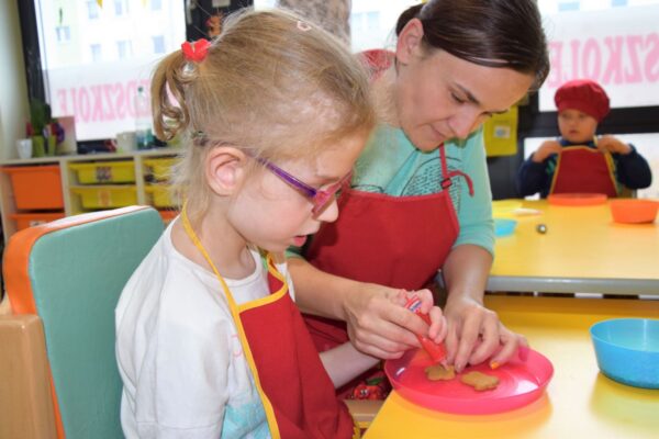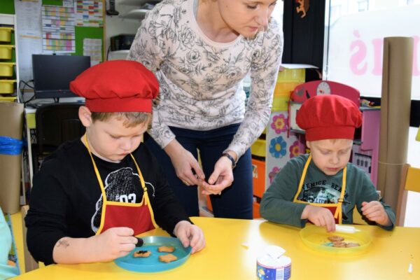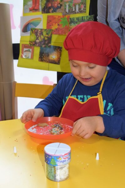Amisiowe przedszkolaki poczuły już nadchodzące święta 🙂 Wszystkie dzieci brały czynny udział w zajęciach Kuchcikowa. Były pierniczki w kształcie dzwoneczków, a także kolorowe pisaki lukrowe i różnorodne posypki. Jeżyki, Sówki, Myszki i Biedronki dekorowały pierniczkowe ciasteczka według własnego pomysłu. Wśród posypek dzieci mogły rozpoznać kształty choinki, płatków śniegu, a także gwiazdek. Pierniczkowy zapach dekorowanych ciasteczek roznosił się po całym przedszkolu, a dzieci z chęcią konsumowały przygotowane przez siebie smakołyki 🙂