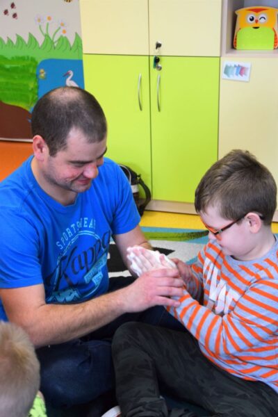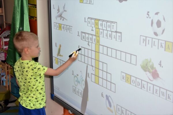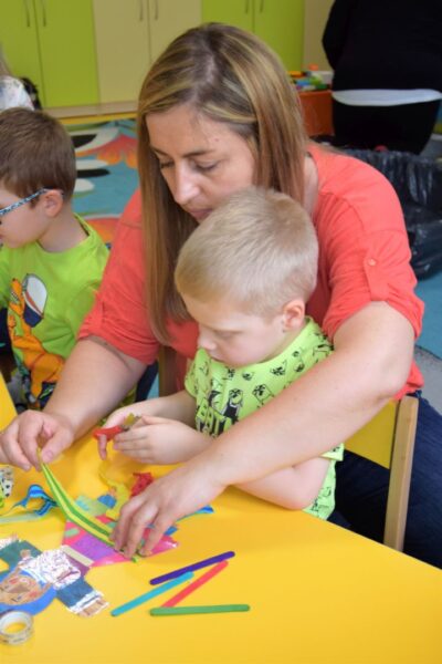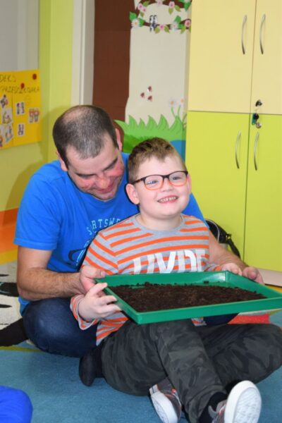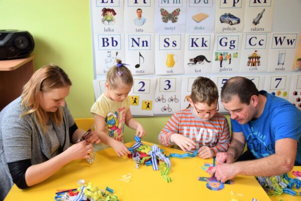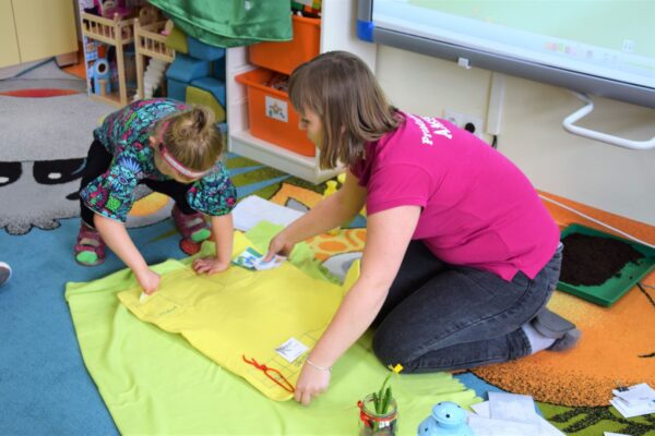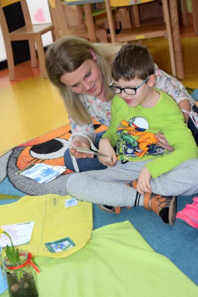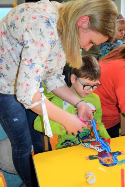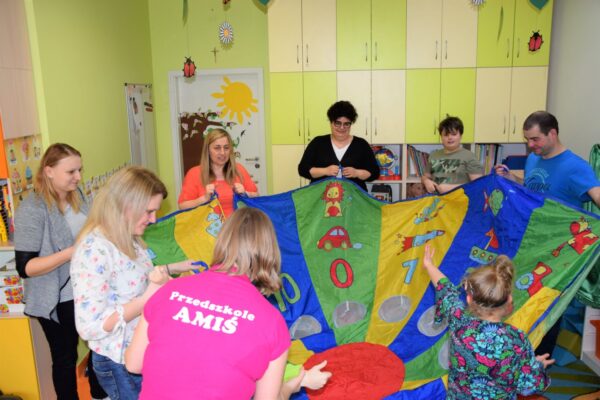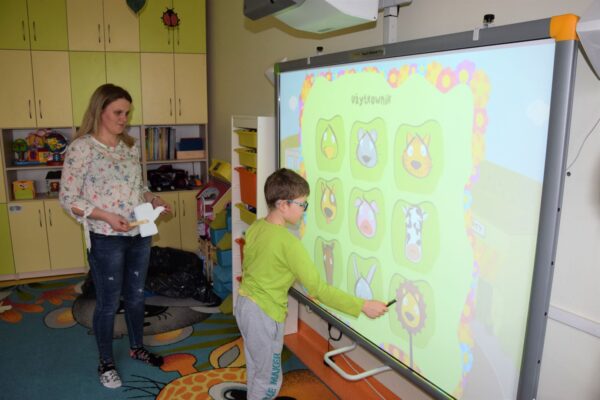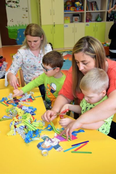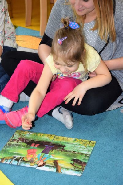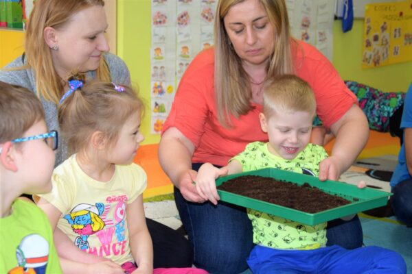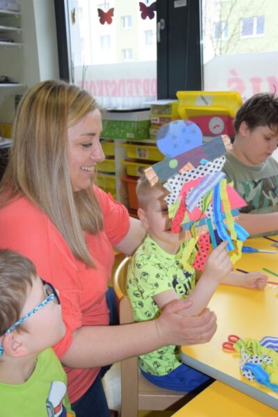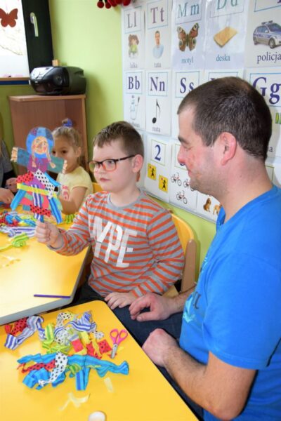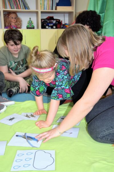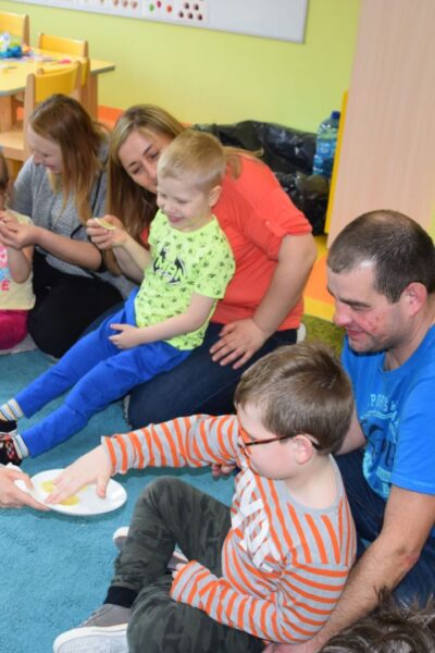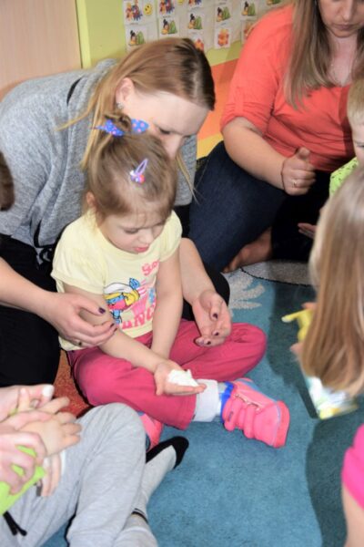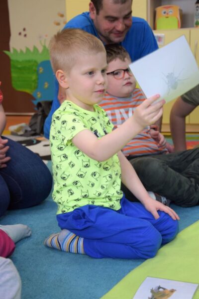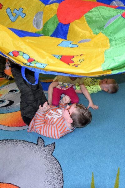 Dzień otwarty w grupie małych Biedronek przyniósł wiele ekscytacji i nowych doświadczeń. Sam początek zajęć zaczęliśmy od wierszyka i śpiewania piosenki powitalnej dla rodziców. Na Porannym kręgu dzieci polisensorycznie poznawały oznaki wiosny. Dotykały ziemi, wąchały kwiatka, cytrynę oraz słuchały wiosennych odgłosów. Do naszej planszy przyczepiliśmy zdjęcia z oznakami wiosny. Nie zabrakło zabawy z chustą animacyjną, która odgrywała rolę parasola. Rodzice trzymali chustę i chodzili z nią po okręgu, a dzieci były latającymi ptaszkami, które chowały się pod parasol kiedy muzyka ucichła. Po zabawie przyszedł czas na rozwiązanie krzyżówki, której rozwiązaniem było hasło MARZANNA. Po tej aktywności przyszedł czas na prace stolikowe przy, których dzieci z rodzicami ozdabiali sylwetę Marzanny. Przygotowane Marzanny wrzucaliśmy do basenu z wodą mówiąc przy tym wierszyk „Marzanno, Marzanno Ty Zimowa Panno, Ciebie pożegnamy, Wiosnę przywitamy”. Dzieci z niecierpliwością czekały na przyjdzie wiosny, zanim jednak to nastąpiło wspólnie z rodzicami przystroili spódnicę, którą Pani Wiosna włożyła. Wszyscy razem odśpiewaliśmy piosenkę „Maszeruje Wiosna”. Po tym przywitaniu Pani Wiosna przeczytała zaproszonym gościom zagadki, na które wszyscy odpowiadali podnosząc kciuk w górę lub w dół. Później przyszedł czas na czytanie wierszyka i obrazowanie jego słów na tablicy multimedialnej. Po tych zajęciach dzieci wraz z rodzicami mogły się zrelaksować przy muzyce „odgłosy łąki”. Wszystkim bardzo dziękujemy za przybycie oraz branie czynnego udziału w zajęciach.
