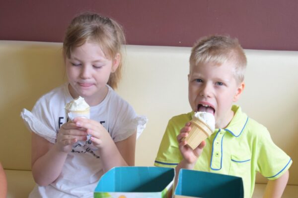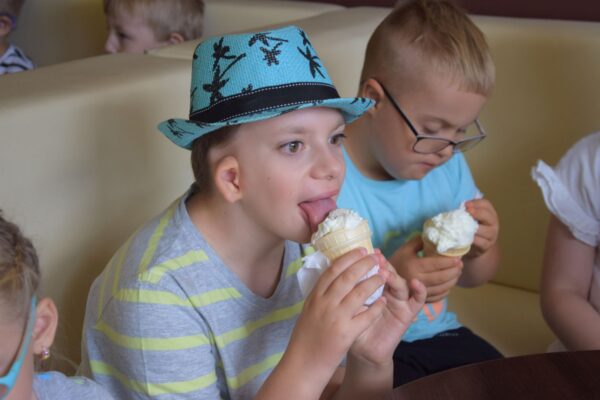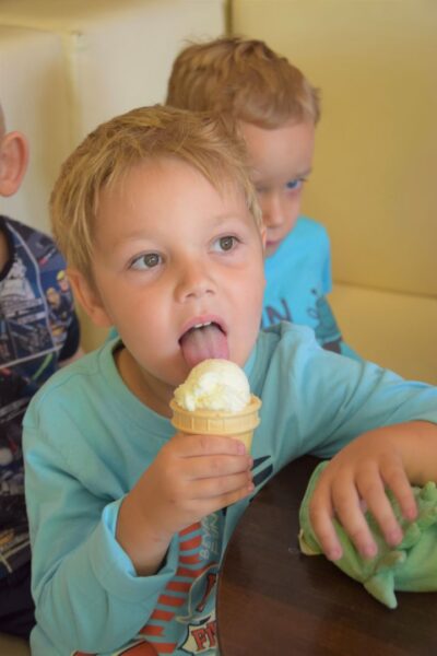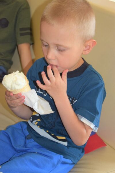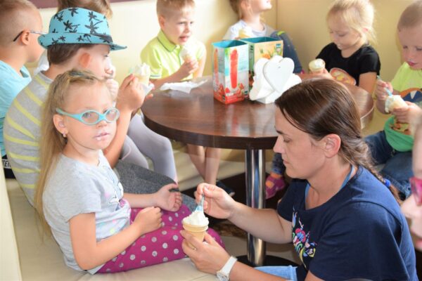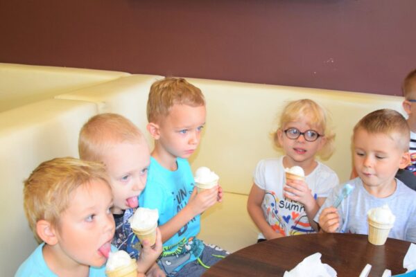 Dzisiejszego dnia ciocie zabrały Amisiaki na spacer. Na dzieci czekała nie lada niespodzianka. Okazało się, że poszliśmy do cukierni na lody. Każdy Amisiak zjadł pysznego śmietankowego loda w wafelku. To była super niespodzianka. Wszystkie dzieci wróciły ze spaceru zadowolone do Przedszkola.