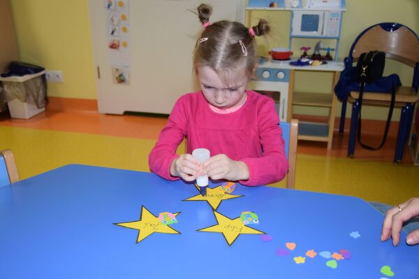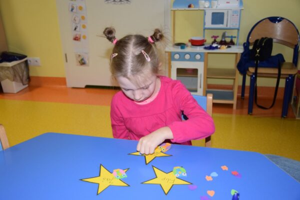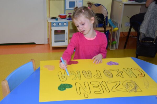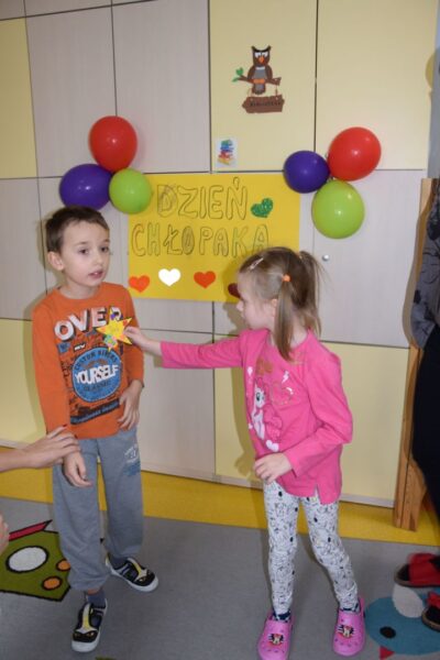 W poniedziałek w grupie Sówek obchodzony był Dzień Chłopaka. Dziewczynki z pomocą cioci przygotowały wielką niespodziankę dla chłopców z Sali. Własnoręcznie przygotowały ordery w kształcie gwiazdki, które potem wręczyły chłopcom. Na koniec wszyscy ustawili się do wspólnego zdjęcia pod wcześniej wykonanym plakatem przez dziewczynki.
