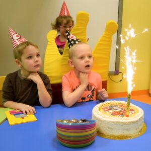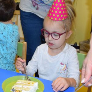 Dzisiaj nasze Amisiaki świętowały 5 urodziny Daniela z sali „Sówek”. Nasz Jubilat poczęstował swoich gości pysznym tortem. Wszystkim dzieciom smakowała taka przekąska i ze smakiem zajadały się nią. Nie zabrakło również gromkiego 100 lat i zdmuchnięcia urodzinowej świeczki. Adaś, kolega z grupy wręczył naszemu Jubilatowi piękną kartkę z najlepszymi życzeniami od wszystkich dzieci z przedszkola. Jeszcze raz życzymy co najlepsze i najpiękniejsze, niech słońce świeci dla Ciebie codziennie.