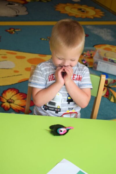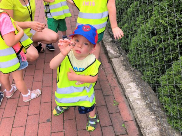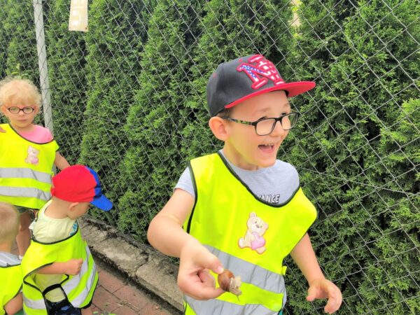 W poprzednim tygodniu dzieci z grupy Jeżyków uczyły się wierszyka o ślimaku. A ponieważ, jak powszechnie wiadomo, że dzieci uwielbiają doświadczać nowej wiedzy na sobie, ciocie postanowiły zabrać przedszkolaki na spacer w poszukiwaniu prawdziwych ślimaków. Wyprawa się udała, bo dzieciom udało się odnaleźć bohatera wierszyka i to nawet nie jednego! Amisiaki przyjrzały im się z bliska a nawet większości udało się pokonać strach i wzięły ślimaka na ręce. Po powrocie do przedszkola dzieci lepiły z plasteliny własne ślimaki, które potem zabrały do domu.