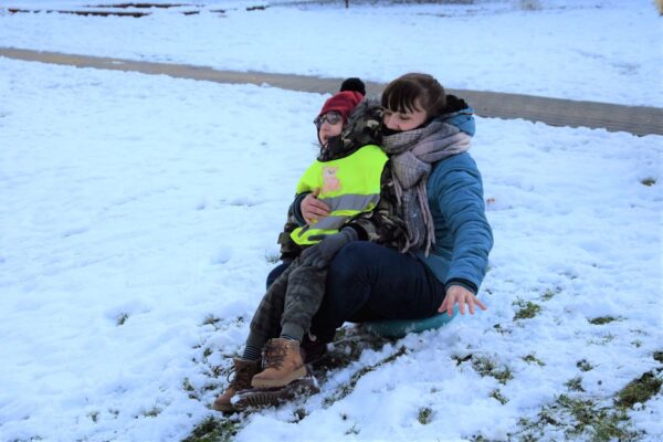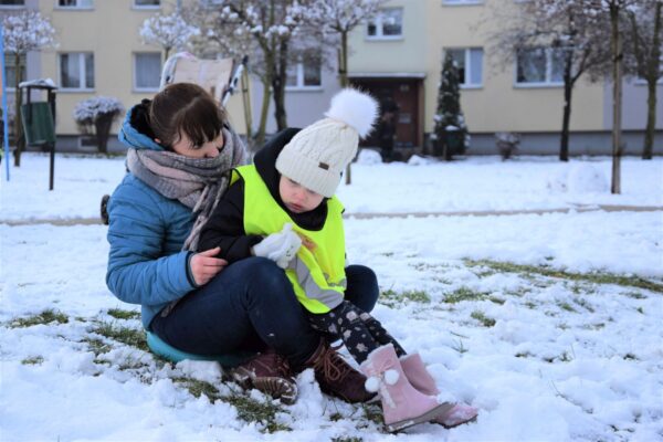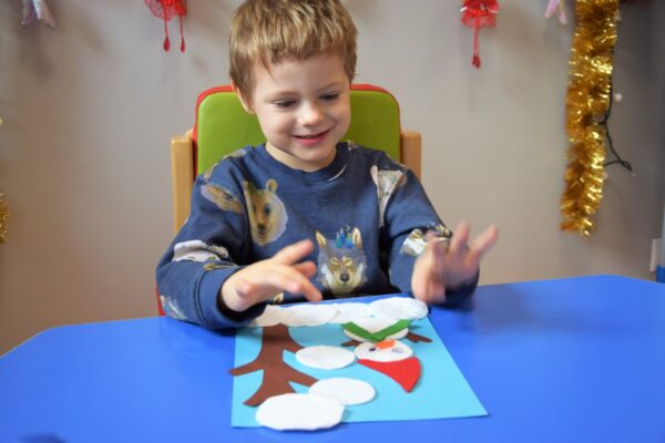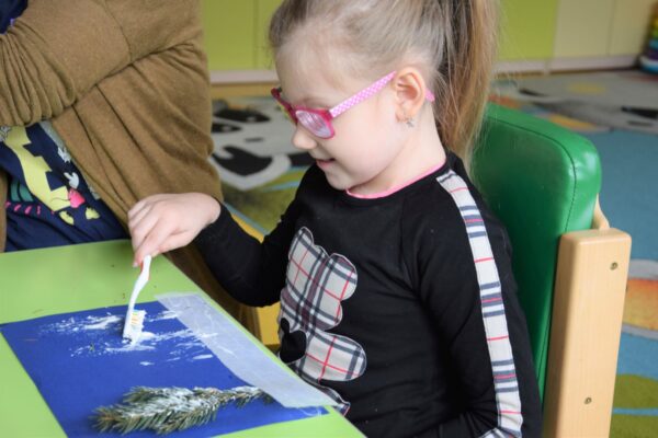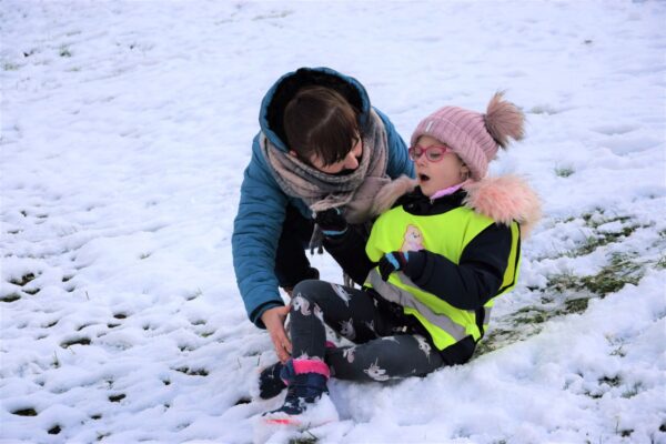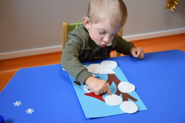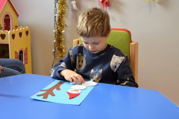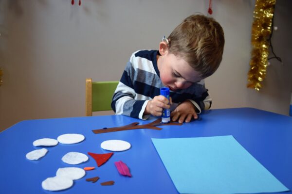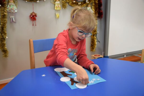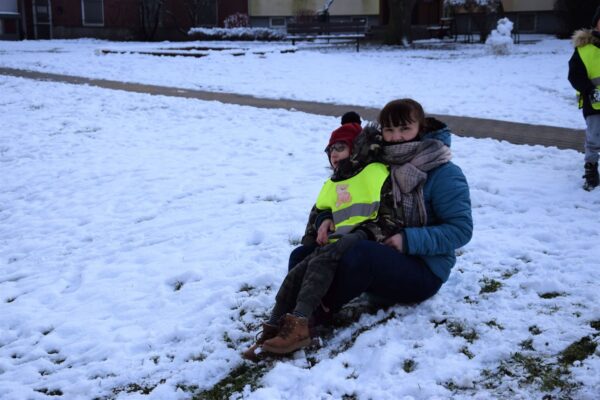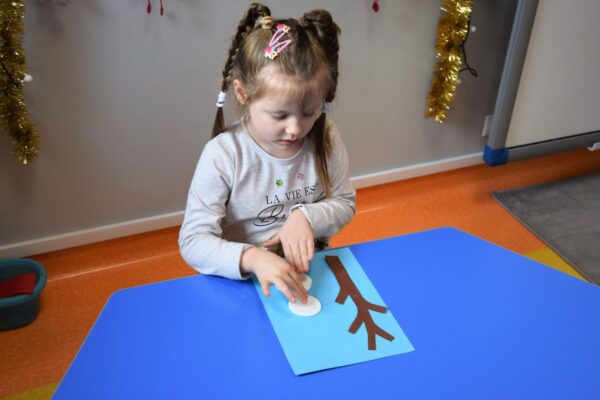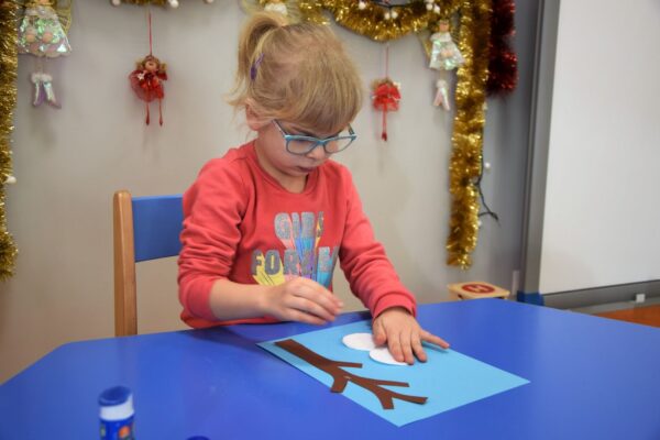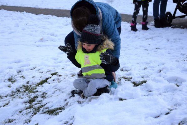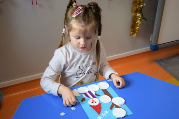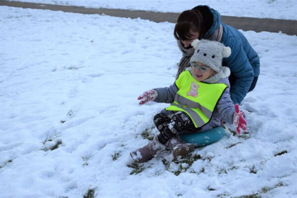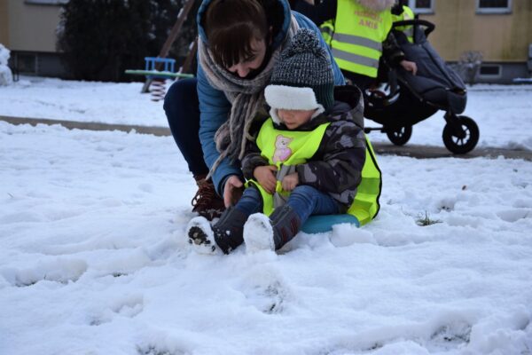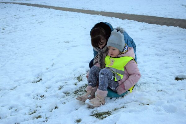Przedszkolaki z grupy Biedronek i Myszek podczas zimowego spaceru miały okazję zjeżdżać na jabłuszku z małej górki jak również rzucać się śnieżkami. Frajdy było co niemiara. Po powrocie do przedszkola kontynuowaliśmy temat zimy wykonując pracę plastyczną. Biedroneczki wykonały bałwanki z płatków kosmetycznych a Myszki zrobiły pejzaż zimowy.