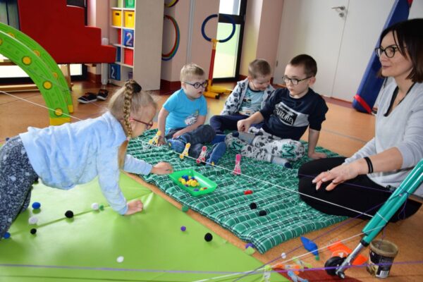 W Amisiowym przedszkolu dzieci uczą się różnych rzeczy a ty razem przyszedł czas, aby dzieci dowiedziały się jak ważny dla nas wszystkich jest ruch. Przy tej okazji Jeżyki mogły popisać się swoimi umiejętnościami ruchowymi i pochwalić się swoją zwinnością, sprytem i szybkością 🙂 Korzystając z Sali integracji sensorycznej, ciocie przygotowały dla dzieci specjalne zadania ruchowe. Każdy przedszkolak musiał poradzić sobie z ogromną, pajęczą siecią, pokonać tor przeszkód, turlać się w beczce i dodatkowo uśmiechać się przy tym od ucha do ucha 🙂 Na koniec dzieci podzieliły się na dwie grupy i został rozegrany mecz siatkówki. Każda drużyna chciała zwyciężyć i walczyła z zaangażowaniem. Nie obyło się oczywiście bez emocji, śmiechów i radosnych okrzyków. Wszystkie dzieci czuły się wygrane bo odpowiednia dawka ruchu zapewniła nam znakomite humory 🙂