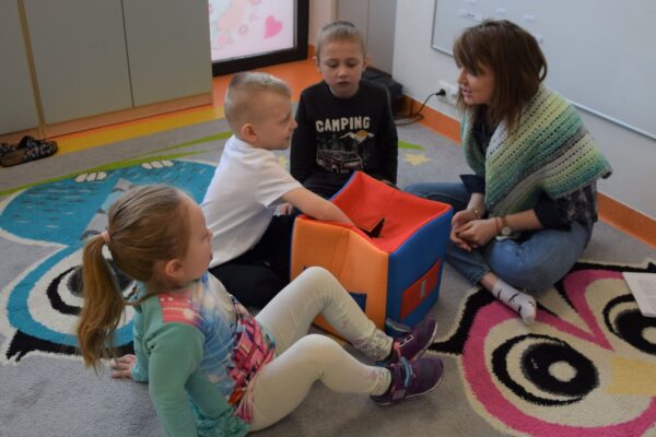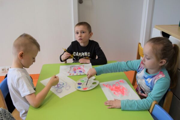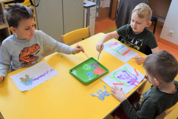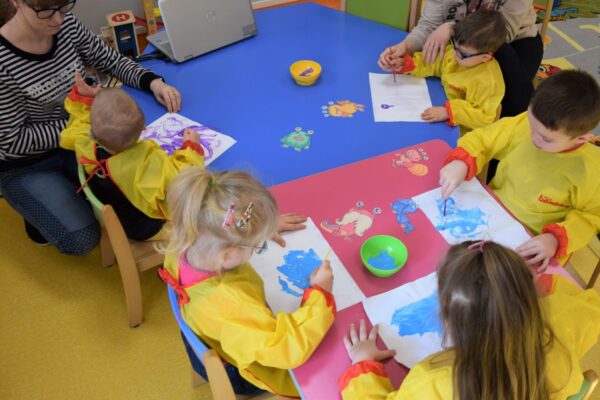 W tym tygodniu Amisiaki poznały emocję STRACH. Była to kolejna część projektu MIŚ W ŚWIECIE EMOCJI. Podczas zajęć dzieci wysłuchały bajki pt. „O strachliwym smoku Osika i dzielnej Królewnie Przytulii” oraz wskazywały emocje przedstawiające strach spośród innych wskazywanych przez ciocię. Grały również w straszne kręgle, zbijając piłką pluszowe stworki. W kolejnej części, Amisiaki na wilgotnych kartkach malowały kolorowymi farbami smoki, potwory i strachy, które rozchodziły się po mokrej powierzchni tworząc niepowtarzalny efekt. Na koniec dzieci obejrzały bajkę o Stasiu, który bał się stworków mieszkających pod jego łóżkiem i dowiedziały się, że tak naprawdę strach siedzi w naszych głowach i jeśli czegoś się boimy to możemy sobie z tym poradzić poprzez namalowanie naszego strachu na kartce, bądź przytulenie się do kochanej mamy, czy taty.