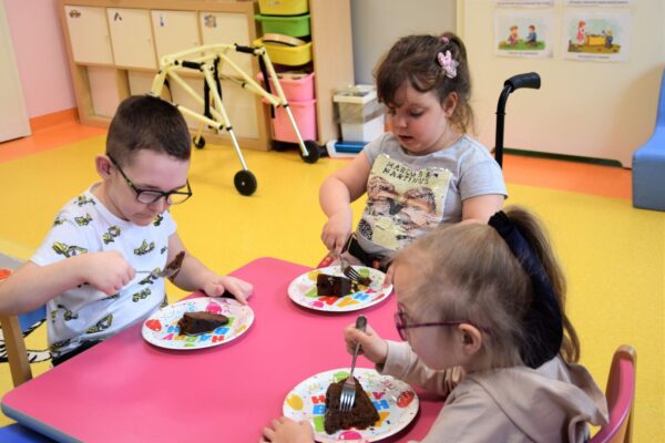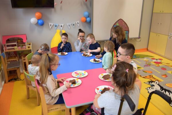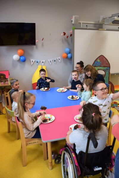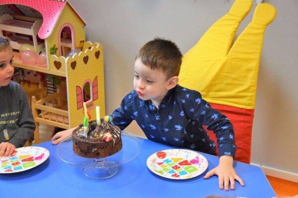 Nasz powrót do przedszkola po świątecznej przerwie obchodziliśmy bardzo słodko, ponieważ nasz kolega – Michał obchodził dzisiaj swoje czwarte urodziny. Elegancki i przejęty dzisiejszym dniem zdmuchnął urodzinową świeczkę, a później wraz z kolegami zajadał przepyszny, czekoladowy tort, który rano przyniosła mama. Michał od swoich kolegów dostał na pamiątkę urodzinową kartkę, która mamy nadzieję będzie mu o nas przypominać. Cała grupa Biedronek wraz z ciociami życzy Michałkowi wiele radości, zdrowia i spełnienia najskrytszych marzeń.