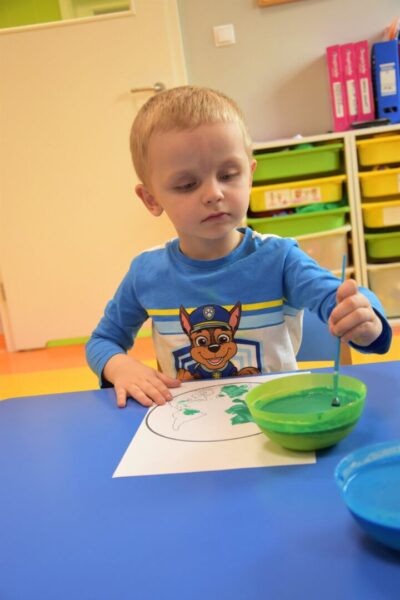 Przedszkolaki obchodziły dziś Światowy Dzień Ziemi. Święto to ma na celu budowanie proekologicznych postaw w społeczeństwie oraz budowanie wspólnej odpowiedzialności za Ziemię. Dzieci już wiedzą, że dla dobra naszej planety należy: sadzić drzewa i pielęgnować rośliny, dbać o przyrodę, oszczędzać wodę i prąd oraz segregować śmieci i ograniczać zużycie plastiku. Każda z grup wykonała wspólna pracę pokazującą jak dbamy o środowisko poprzez wykonanie makiety przedstawiającej otaczającą nas przyrodę, co sprzyja naszej planecie czy dopasowanie obrazków o uśmiechniętej i smutnej Ziemi oraz pomalowanie globu rosnącą farbą.