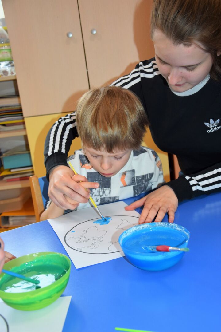 Przedszkolaki obchodziły dziś Światowy Dzień Ziemi. Święto to ma na celu budowanie proekologicznych postaw w społeczeństwie oraz budowanie wspólnej odpowiedzialności za Ziemię. Dzieci już wiedzą, że dla dobra naszej planety należy: sadzić drzewa i pielęgnować rośliny, dbać o przyrodę, oszczędzać wodę i prąd oraz segregować śmieci i ograniczać zużycie plastiku. Każda z grup wykonała wspólna pracę pokazującą jak dbamy o środowisko poprzez wykonanie makiety przedstawiającej otaczającą nas przyrodę, co sprzyja naszej planecie czy dopasowanie obrazków o uśmiechniętej i smutnej Ziemi oraz pomalowanie globu rosnącą farbą.
