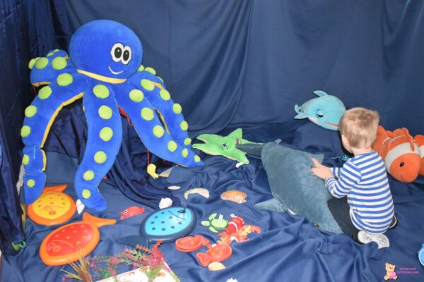 Oj działo się w tym tygodniu w grupa Lisków poznała co pod wodą i pod ziemią. Razem ciocią chłopcy wyciągaliśmy „dary”