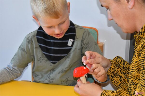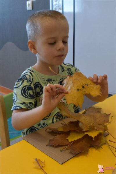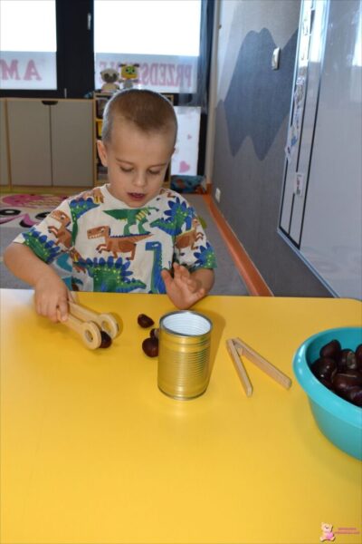 Grupa Dinusie🦕🦕 w poprzednim tygodniu omawiała blok tematyczny pt. „Jesienny krajobraz”. W trakcie zajęć dzieci pracowały na tablicy multimedialnej rozpoznając dźwięki i wskazując zwierzęta, 🦔🦌🐗🦉jakie można usłyszeć podczas spaceru w lesie lub parku. Ćwiczyły swoje rączki👐 przenosząc szczypcami kasztany do puszki oraz malując liście i grzyby🍄. Na koniec tygodnia wykonali jesienne skrzaty z liści 🍂🍁zebranych podczas spaceru.