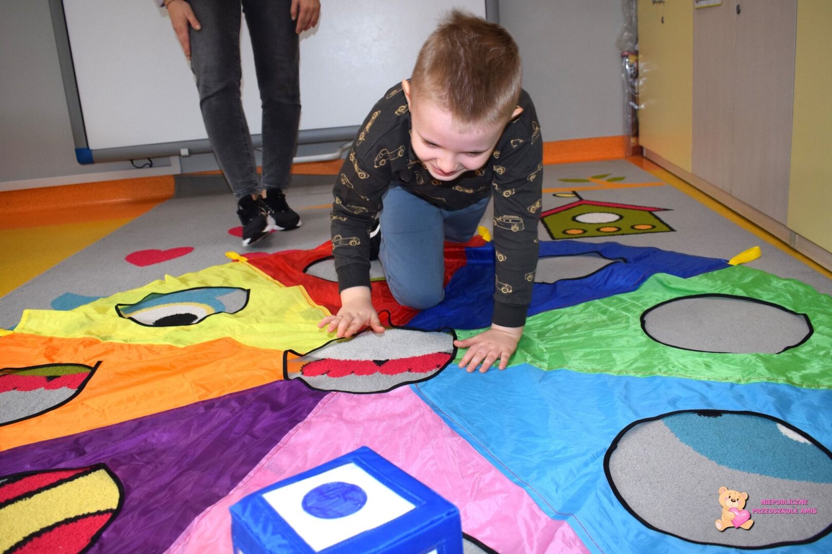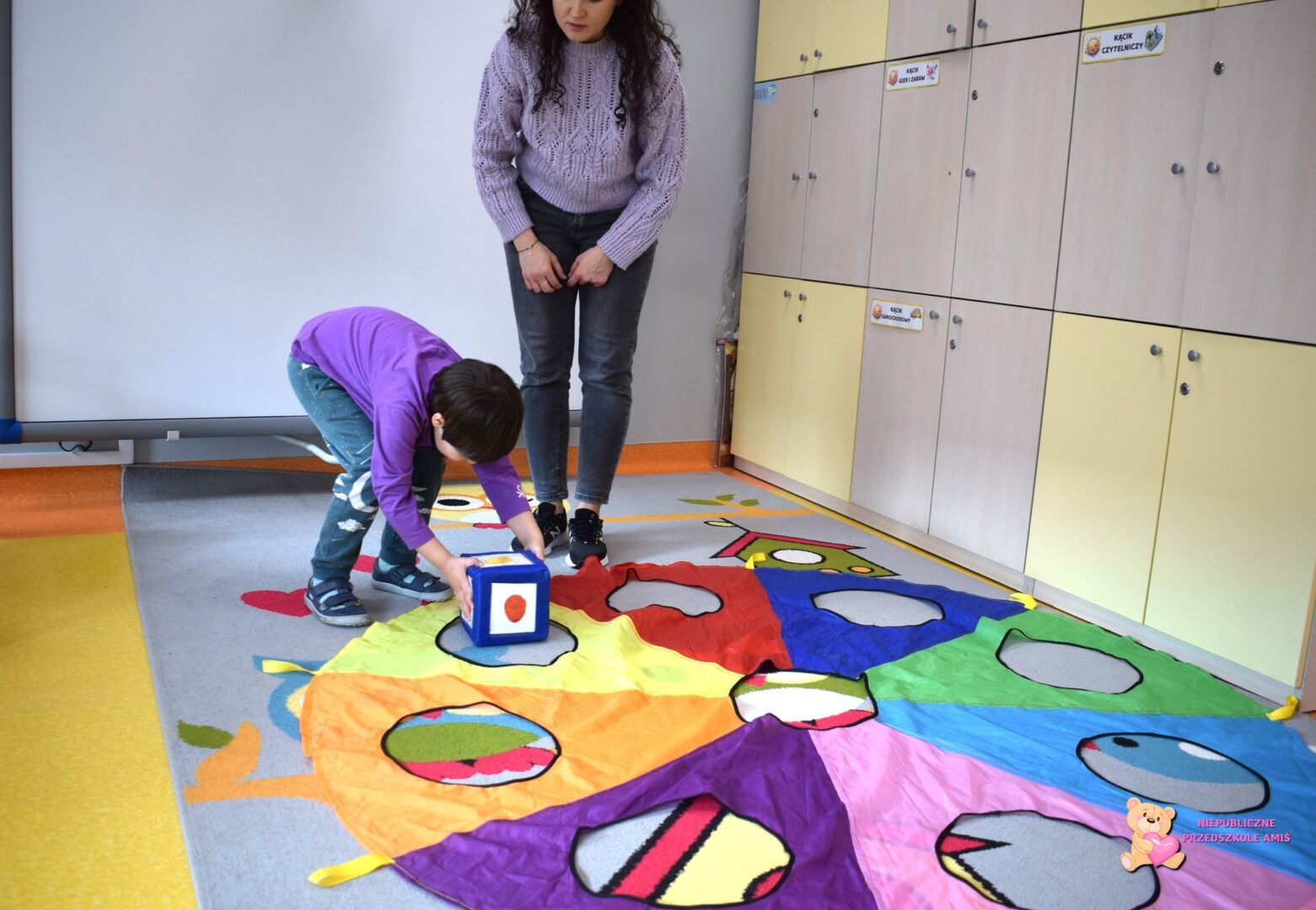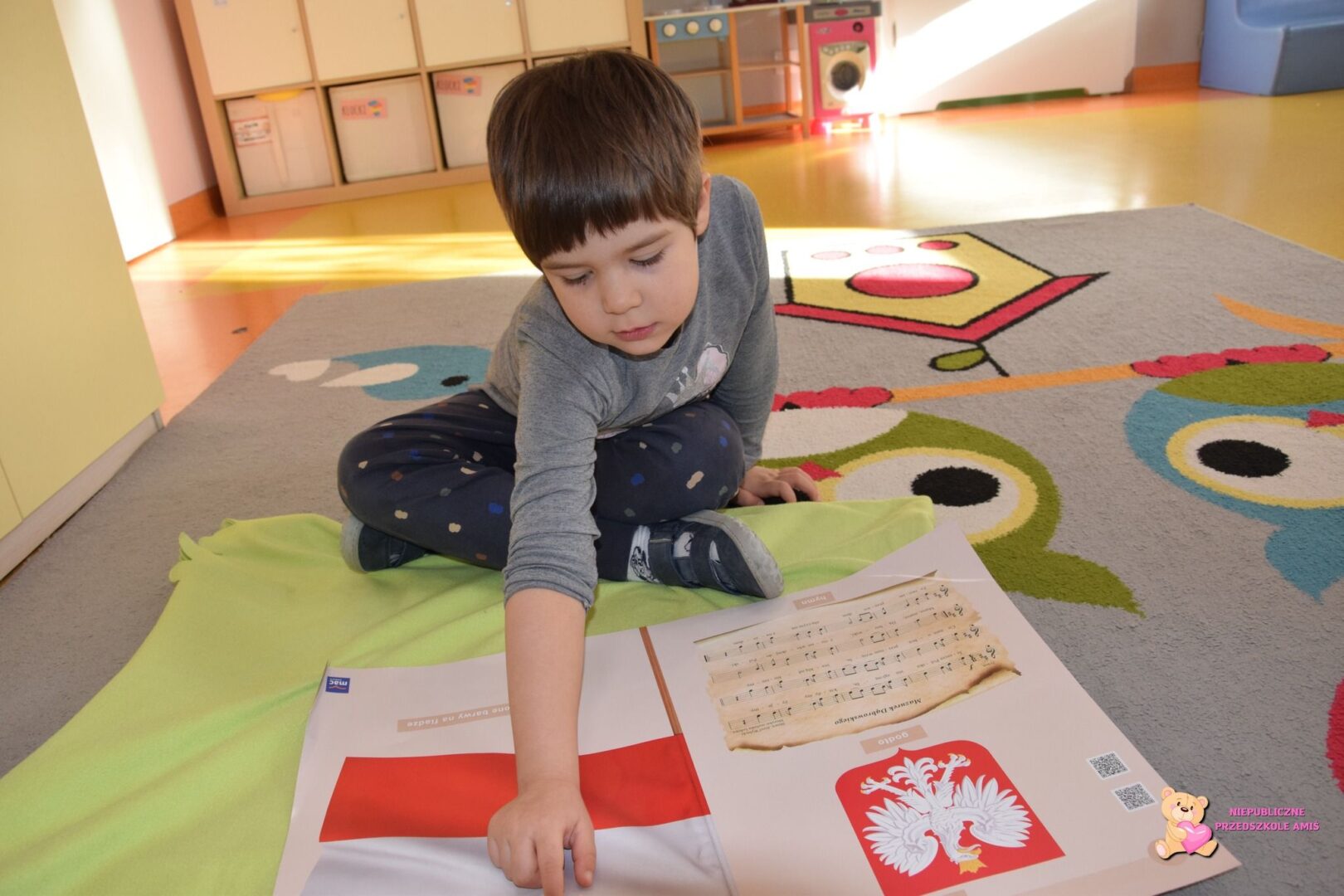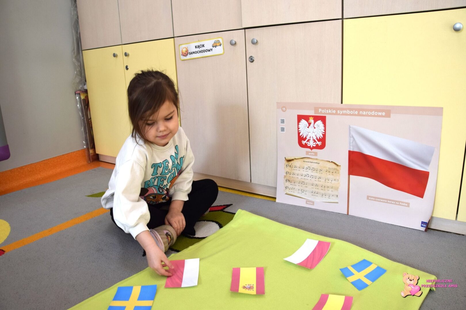 W tym tygodniu Amisiaki z grupy Promyczków kształtowały umiejętności segregowania ze względu na określoną cechę. Przedszkolaki przypomniały sobie barwy flagi Polski oraz zapoznały się z wyglądem innych flag. Dzieci brały udział w zabawie ruchowej z wykorzystaniem chusty animacyjnej, na której dopasowywały odpowiednie kolory. Pracowaliśmy również na NeuroTAB-ie
