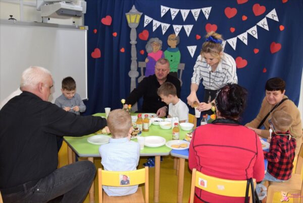 W ten piękny dzień przedszkolaki gościły w swoim przedszkolu kochane Babcie i Dziadków. Dzieci wraz z ciociami przygotowały krótki występ artystyczny. Niejednej babci i dziadkowi łza kręciła się w oku. Następnie wnuki zaprosiły swoich dziadków do wspólnych warsztatów gdzie były dekorowane pyszne maślane ciasteczka. Na dziadków czekał słodki poczęstunek przygotowany przez rodziców. Amisiaki wręczyły swoim dziadkom własnoręcznie wykonane laurki oraz medale. To był naprawdę wyjątkowy dzień, pełen emocji. Dziękujemy swoim dziadkom za przybycie i jeszcze raz i życzymy im wszystkiego co najlepsze.