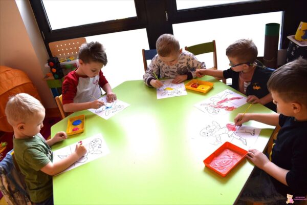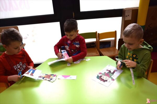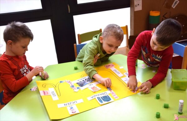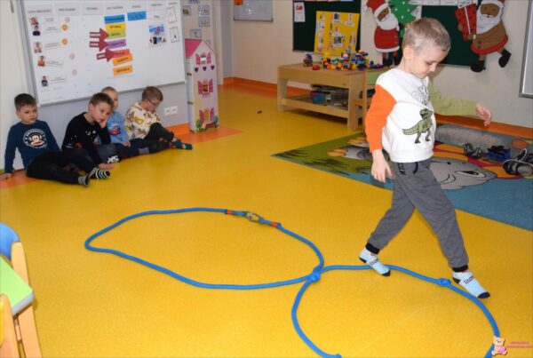 Poznali wybrane zimowe dyscypliny sportowe oraz brali udział w quizie sprawdzającym znajomość poszczególnych dyscyplin. Poznali cyfrę 8, ćwicząc jednocześnie umiejętności równoważne. Wprowadzono także literę „U”. Tydzień też bogaty był w zabawy ruchowe, konstrukcyjne oraz rozwijające motorykę małą. Chłopcy często wycinali nożyczkami, kolorowali, ćwiczyli pisanie przy okazji tworzenia prac plastycznych.