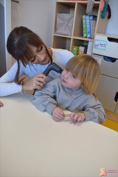 odwiedziła ciocia Marta i poprowadziła zajęcia z logopedii. Trening słuchowy „ Co słychać wokół nas „ na neuroTAB, mające na celu usprawnienie przetwarzania bodźców dźwiękowych przez mózg, poprawę koncentracji oraz umiejętności komunikacyjnych. Kształtowanie percepcji słuchowej jest kluczowe dla rozwoju mowy, czytania i pisania. Dodatkowo masaż neurowibratorem który znakomicie sprawdza się w regulacji napięcia mięśniowego, poprawia ruchomość aparatu artykulacyjnego oraz ekspresje i mimikę twarzy.