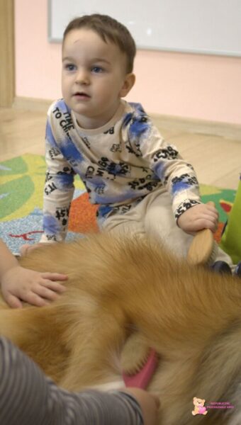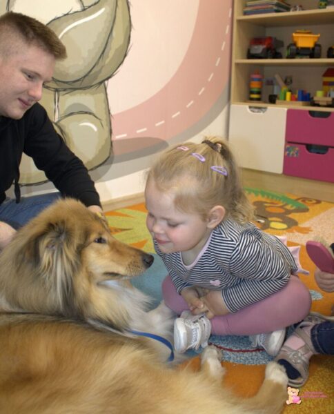 – Dogoterapii. Klasycznie zaczęliśmy od przywitania się i wyczesania pieska. Wujek rozłożył nam ogromną planszę, gdzie mieliśmy za zadanie podążać tylko za wybranym przez nas kolorem i dojść do mety z pieskiem tego samego koloru