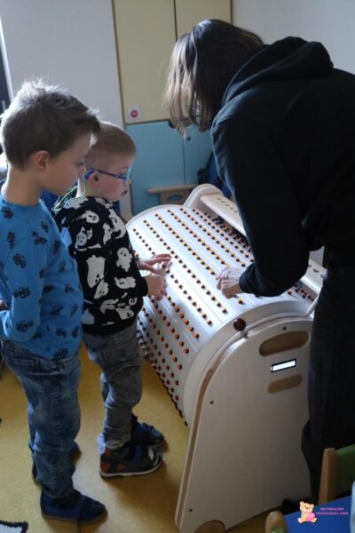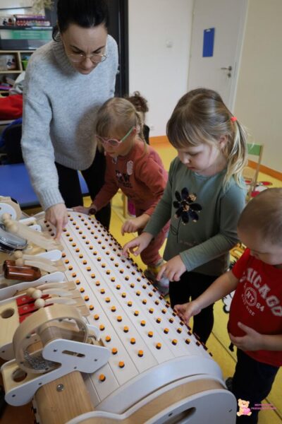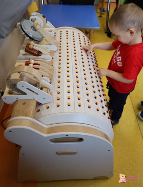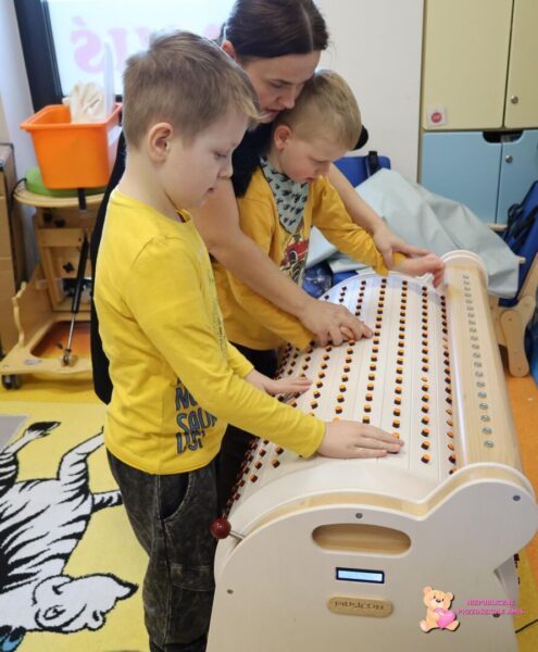 W minionym tygodniu podczas zajęć z muzykoterapii dzieci tworzyły własne dźwięki muzyczne wykorzystując do tego Musicon- instrument muzyczny pozwalający na programowanie kolejności dźwięków za pomocą przycisków oraz dołączonych do niego instrumentów muzycznych. Przedszkolaki wystukiwały także rytmy na kolorowych bum bum rurkach, było przy tym mnóstwo zabawy.