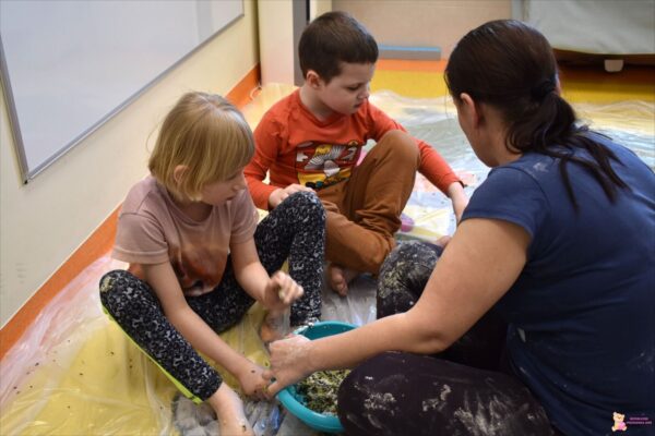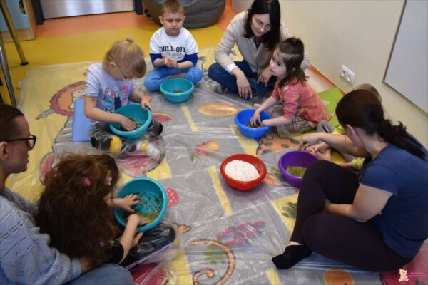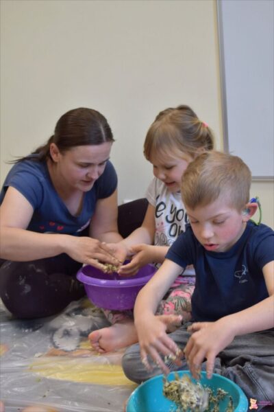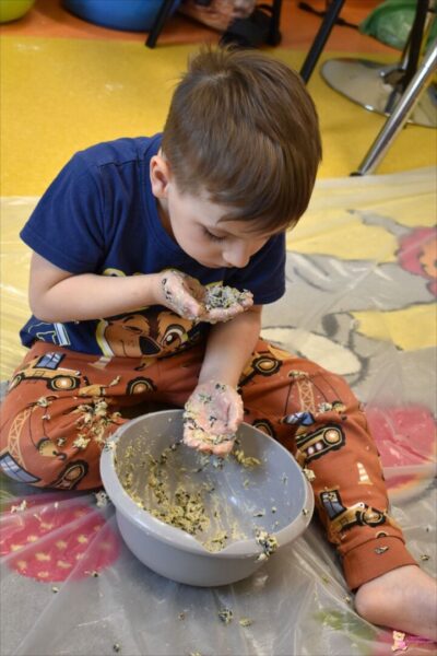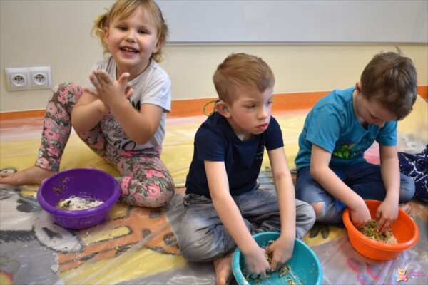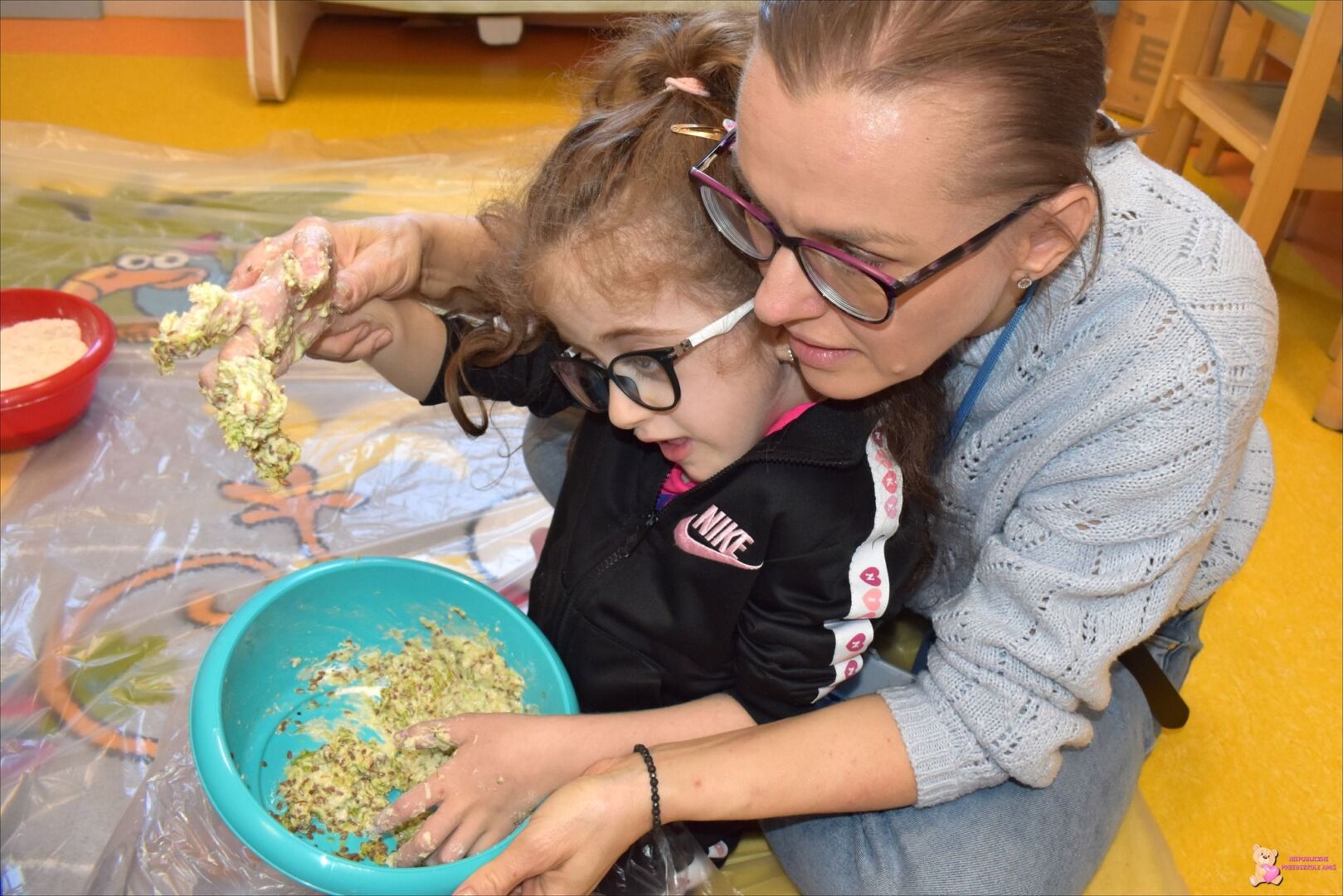 Amisiaki na zajęciach Sensoplastyka połączonych z zajęciami hortiterapii wykonały masę sosnową🌲. Każdy mieszał zmielone pędy sosny z dodatkiem siemienia lnianego i mąki. Po wykonaniu naszej pachnącej masy lepiliśmy z niej kulki, ciasteczka lub wyciskaliśmy między paluszkami. Zapach unosił się w całej Sali👃.