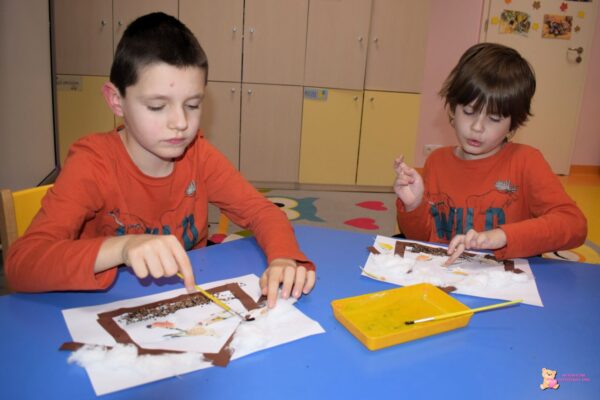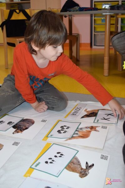 W tym tygodniu grupa „Zajaczków” zaczęła przygotowania do zbliżającej się pory roku- zimy. Chłopcy wzbogacali swoją wiedzę na temat leśnych zwierząt, ich nawyków żywieniowych oraz sposobów, w jaki możemy pomóc zwierzętom zimną porą. Amisiaki utrwalały swoją wiedzę podczas zabawy dydaktycznej, w której losowali tropy zwierząt i przyporządkowywali je odpowiedniemu obrazkowi. Przeprowadzali analizę głoskową nazw mieszkańców lasu oraz samodzielnie układali ich nazwy ze zbioru liter. „Zajączki” wykonały także prace plastyczną „karmnik dla ptaków’, podczas której dowiadywali się, które ptaki odlatują, a które pozostają w Polsce na zimę.